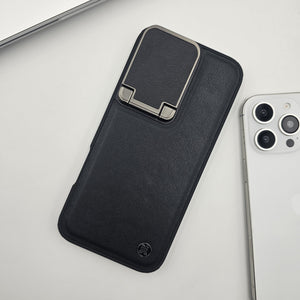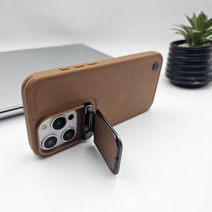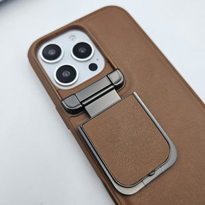 iPhone Leather Foldable Metal Stand Camera Protection Case Inside Micro-Fibre