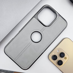 iPhone Logo Cut Centre Stitched PU Leather Chrome Case
