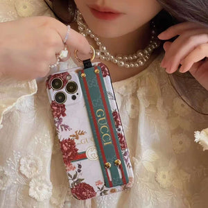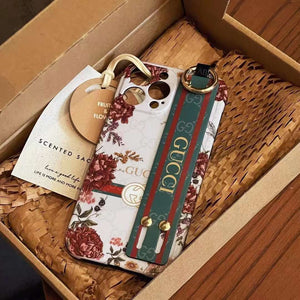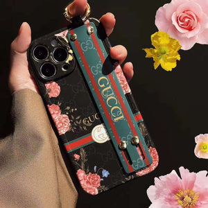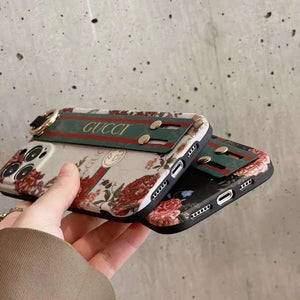 iPhone Luxury Brand GG Floral Black White Belt Strap Holder Case Cover