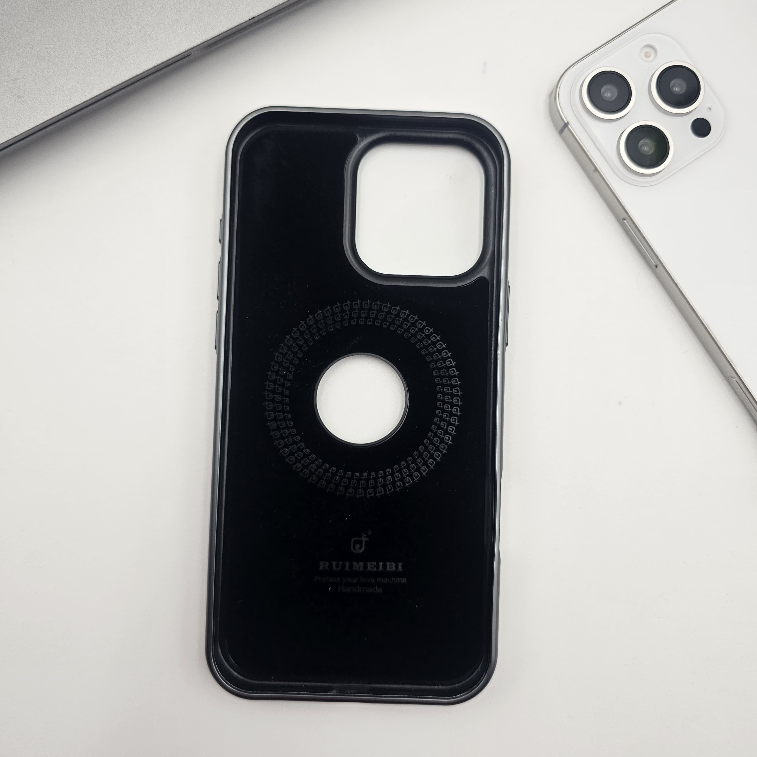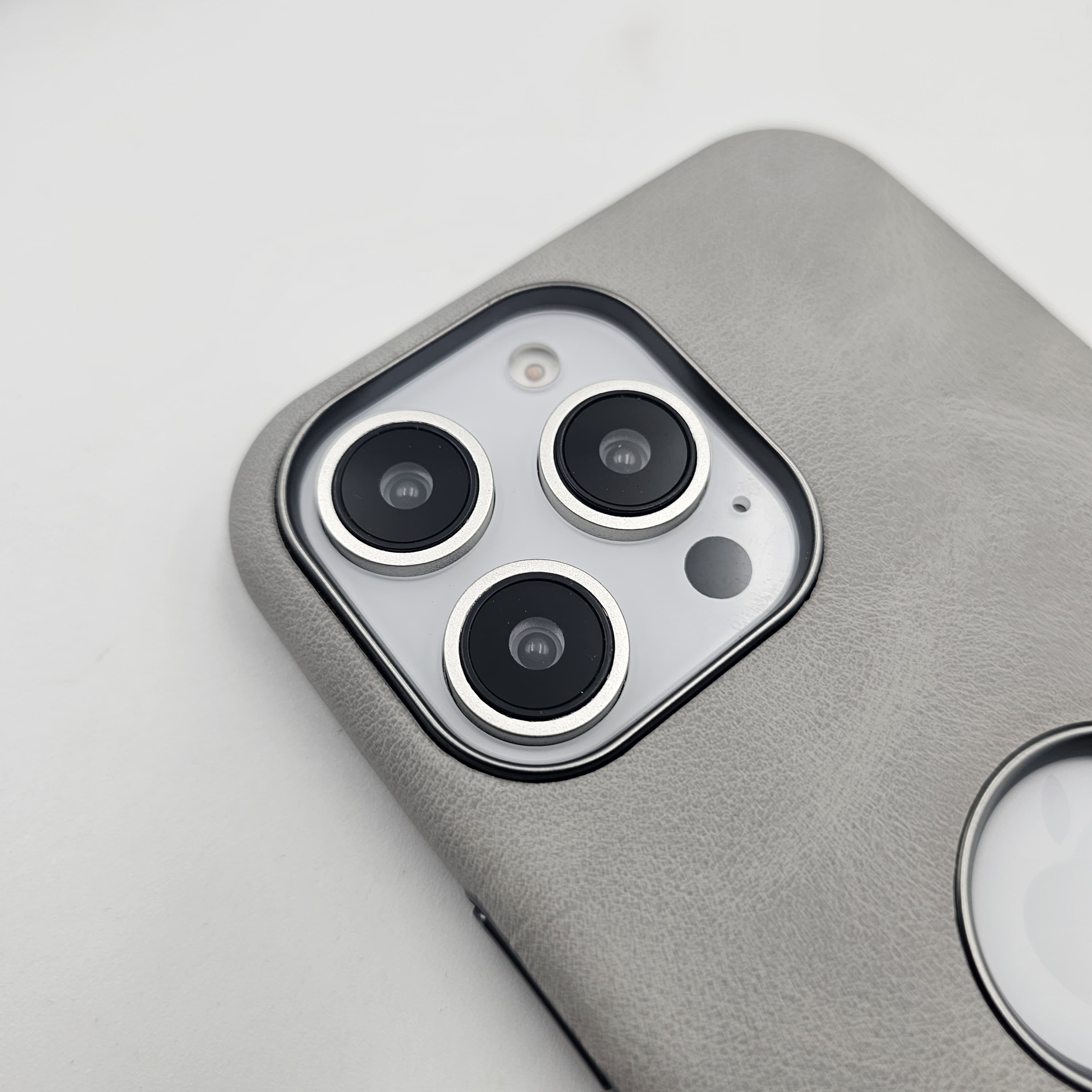 iPhone Luxury Leather Logo Cut Hidden Magsafe Case