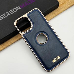 iPhone Luxury PU Leather Chrome Plated Logo Cut Case Cover