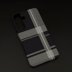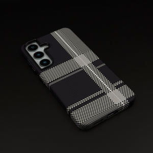 Ivory Plaid Black Phone Case Cover for Samsung Galaxy S24 | S25 | Rare Aramid Texture Finish | Real Carbon Fibre Feel | Hidden MagSafe