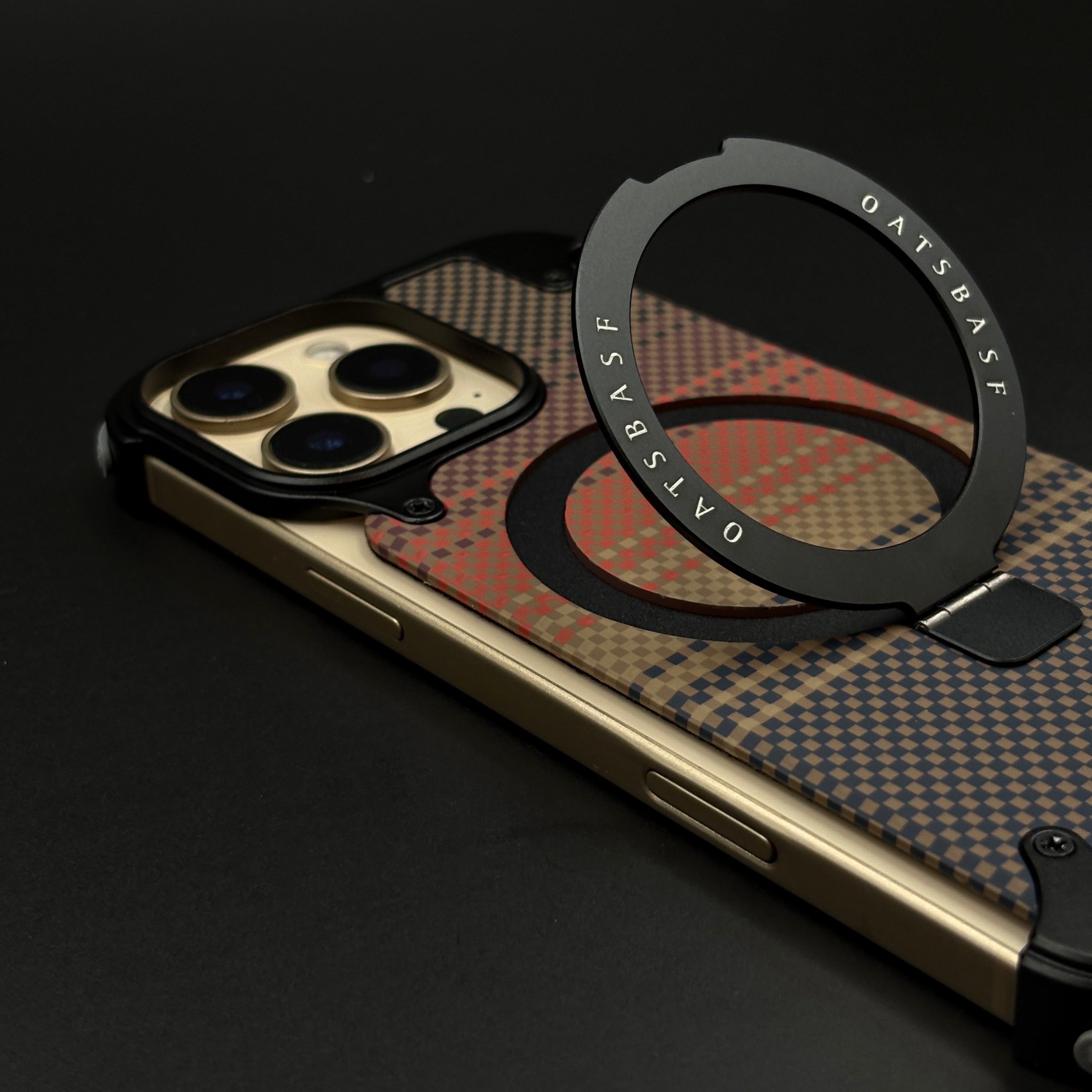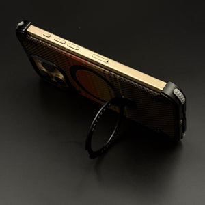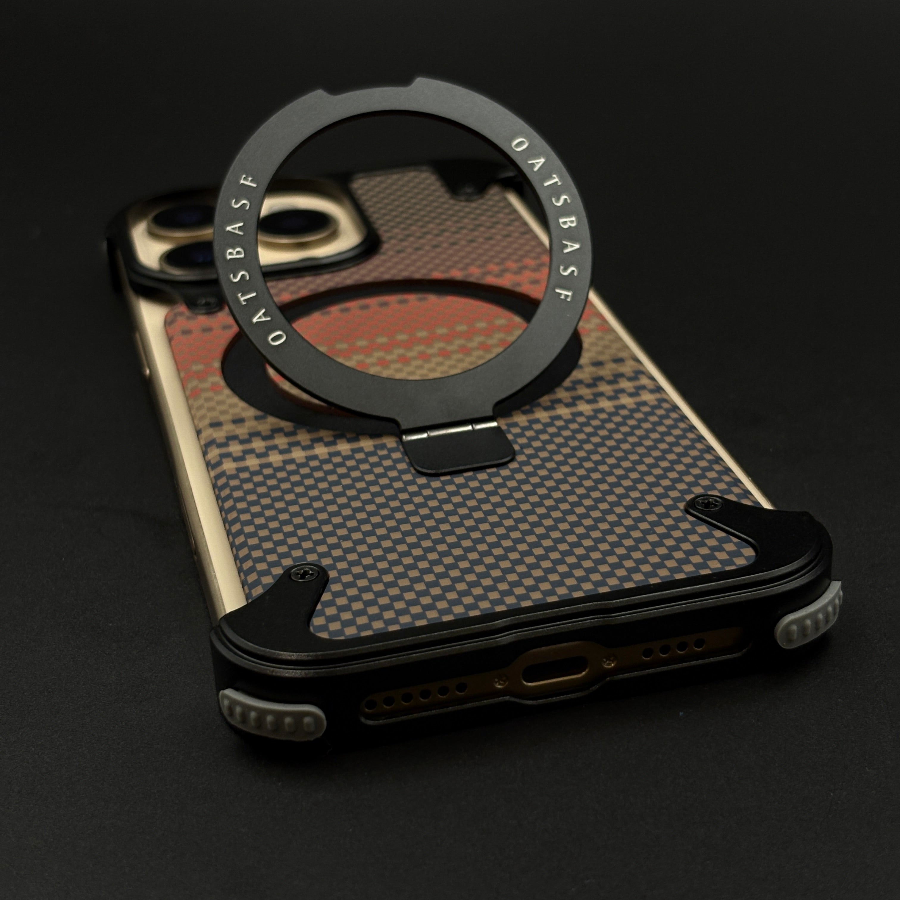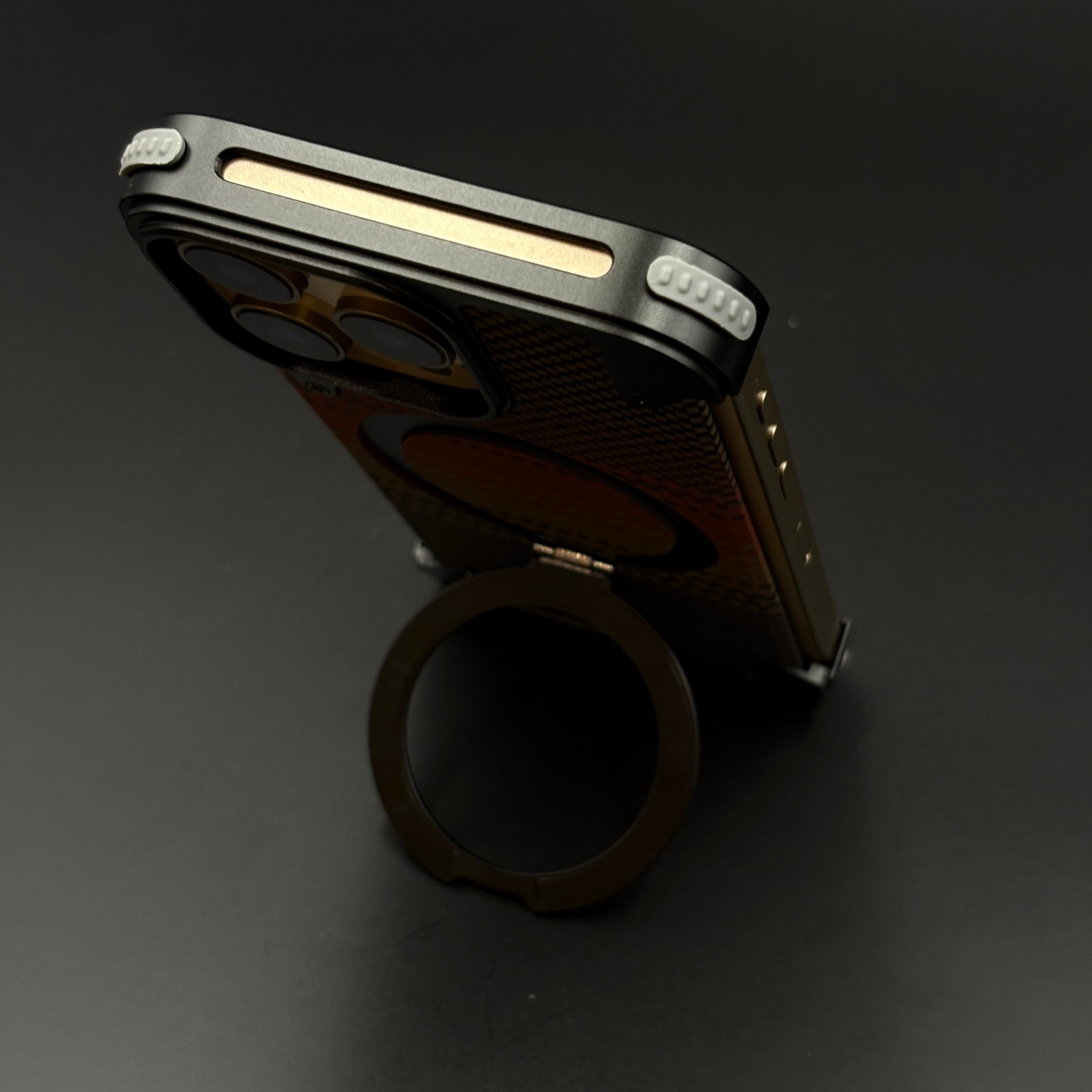 Give your iPhone the ultimate makeover with this bold, rugged, and ultra-functional Kevlar pattern metal frame case. Designed for protection, performance, and premium aesthetics, this case features a built-in magnetic ring stand that doubles as a kickstand and grip loop—perfect for style on the move.