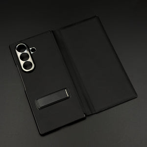 Leather Case with Flip Cover for Samsung Galaxy Z Fold 7 | Robust Metal Kickstand | Elegant Touch