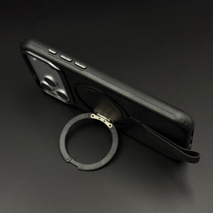 Leather MagSafe Ring Stand Case with Strap for iPhone 17 Series | Slim Grip Holder Cover