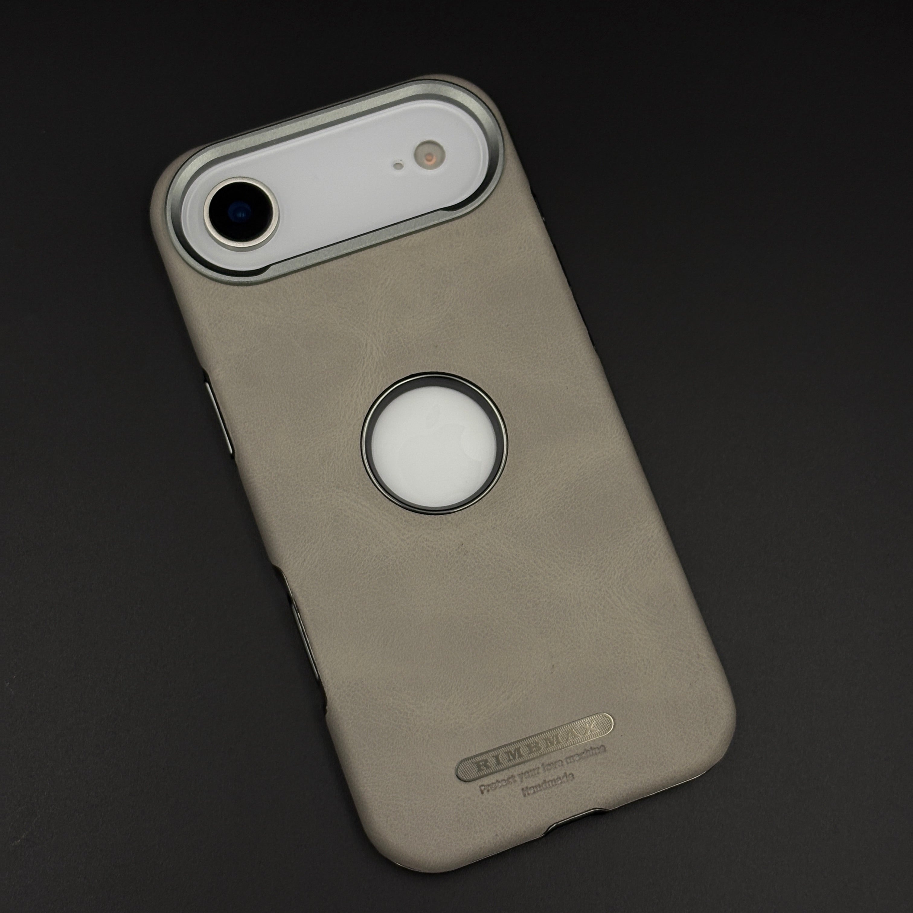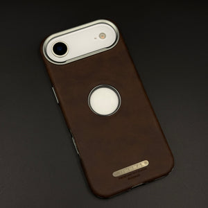 Elevate your iPhone 17 Air with this logo cut hidden MagSafe leather case, featuring a precise Apple logo window, seamless embedded magnetic ring, and soft premium leather finish for sophisticated protection and wireless charging.
