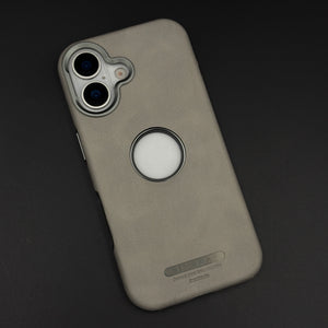 Elevate your iPhone 17 with this logo cut hidden MagSafe leather case, featuring a precise Apple logo window, seamless embedded magnetic ring, and soft premium leather finish for sophisticated protection and wireless charging.