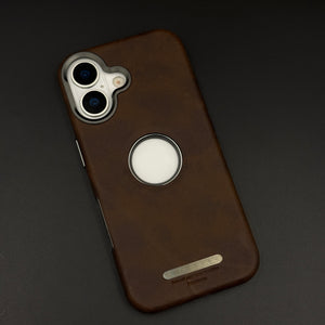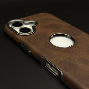 Logo Cut Hidden MagSafe Leather Mobile Case Cover for iPhone 17 | Exposed Apple Logo
