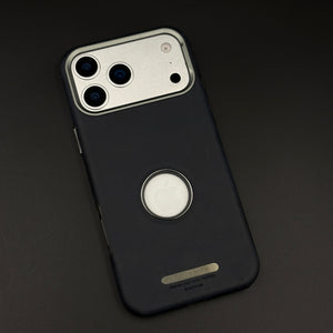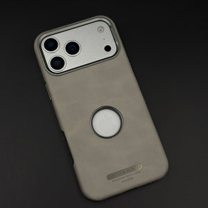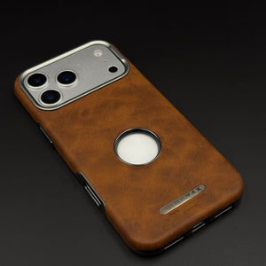 Elevate your iPhone 17 Series with this logo cut hidden MagSafe leather case, featuring a precise Apple logo window, seamless embedded magnetic ring, and soft premium leather finish for sophisticated protection and wireless charging.
