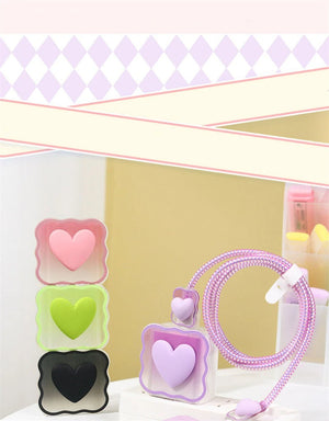 Love Heart Transparent Charging Cable Protector and Adapter Case