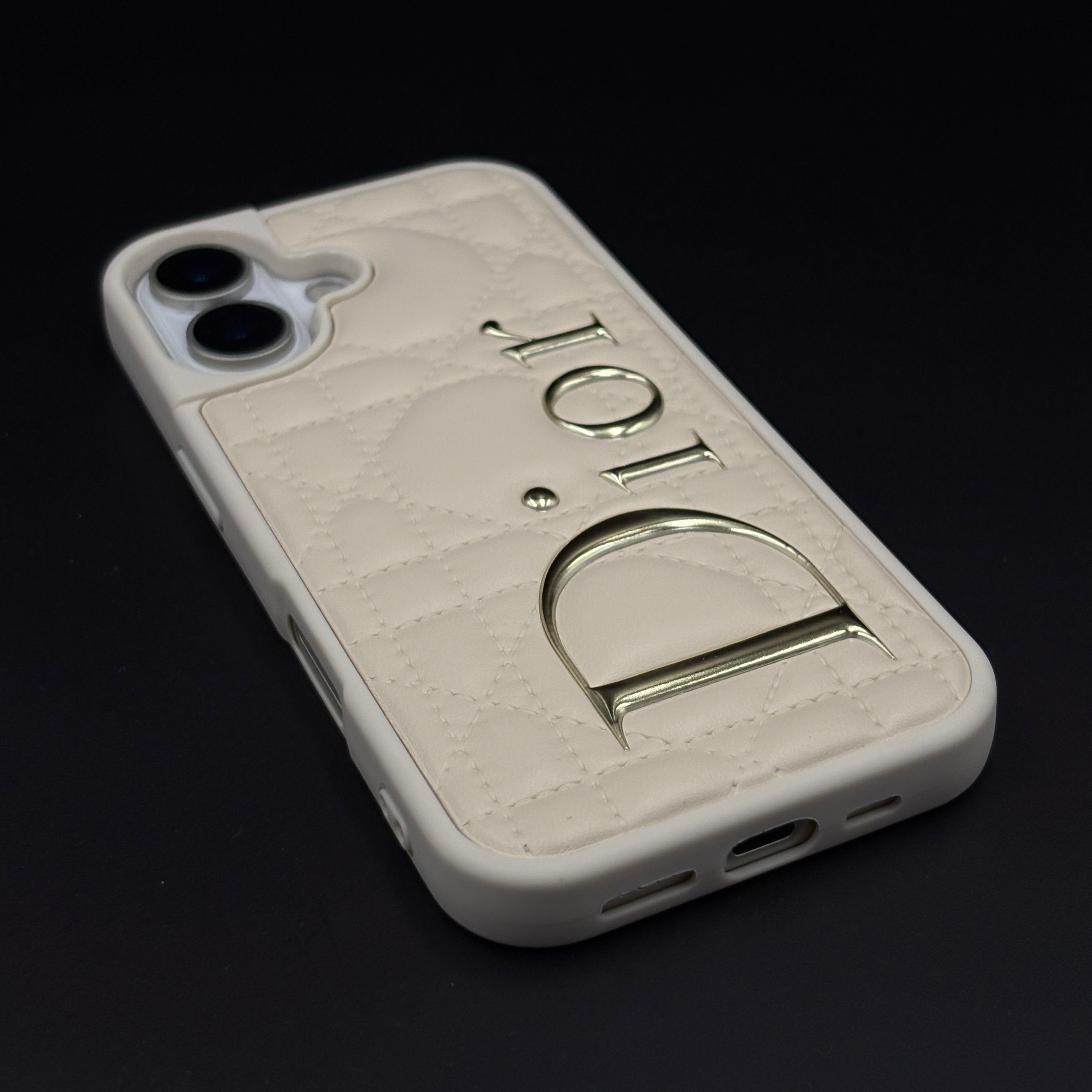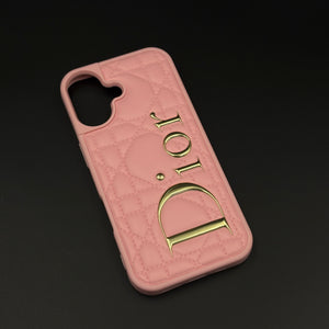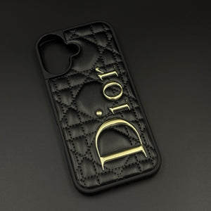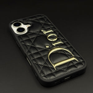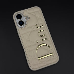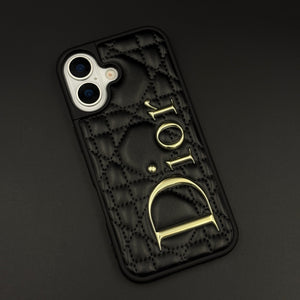 Luxury Brand CD Puffer Leather Case for iPhone 17 | Quilted Designer Protective Cover