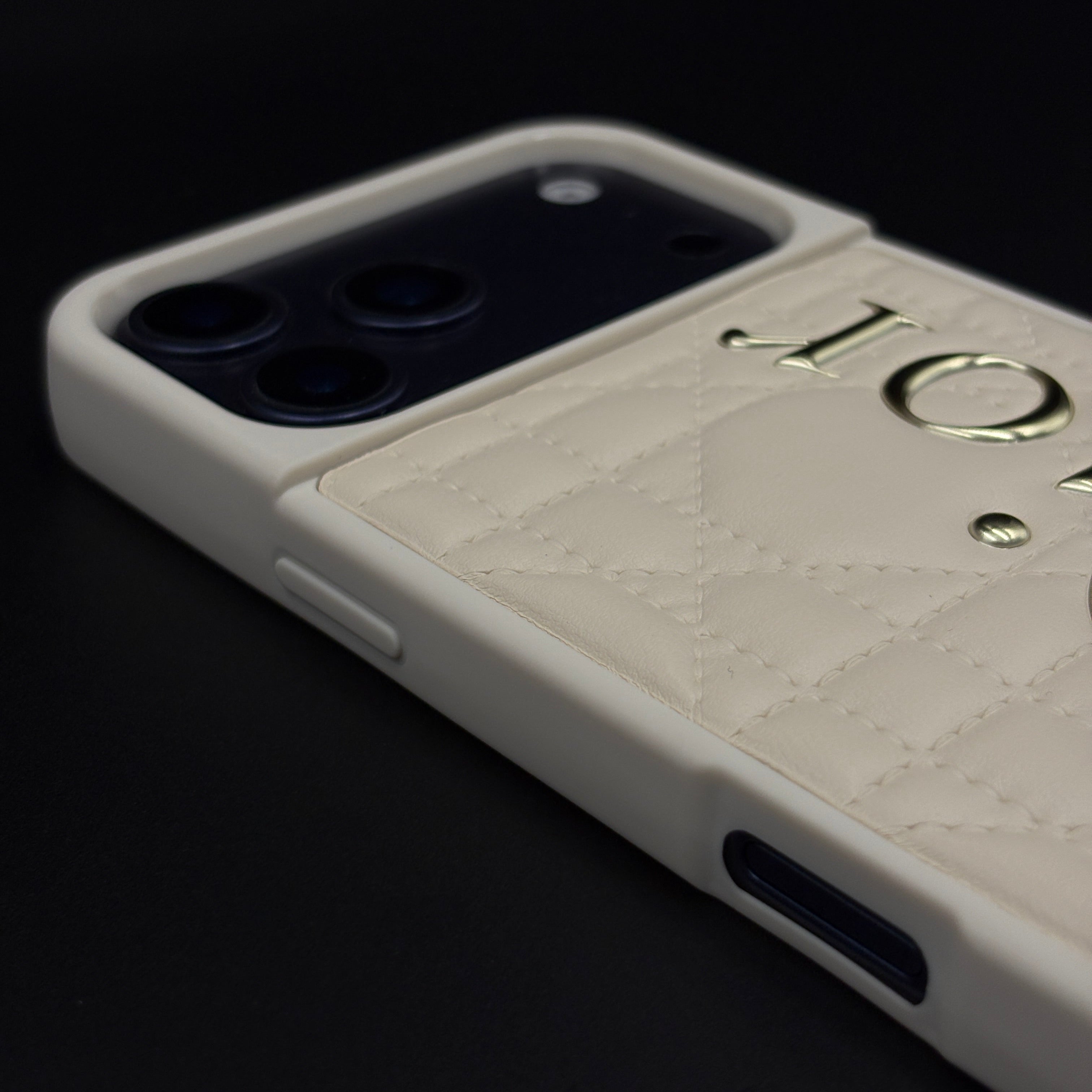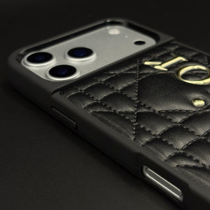 Luxury Brand CD Puffer Leather Case for iPhone 17 Series | Quilted Designer Protective Cover