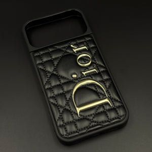 Elevate your iPhone with this luxury CD puffer leather case featuring a quilted texture and bold metallic logo. Designed for both fashion and protection, it delivers premium style, durability, and a soft-touch grip.