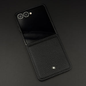 Experience the fusion of luxury and protection with this MB Logo Case for Samsung Galaxy Z Flip 7—featuring textured leather, iconic MB branding, and precisely engineered coverage for today's premium foldable.