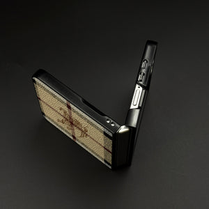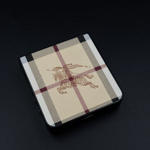 Style your Galaxy Z Flip 7 with this luxury fashion PU leather case featuring a classic BBRY pattern. Designed for elegance and durability, it combines premium texture, precise cutouts, and reliable protection in a slim profile.