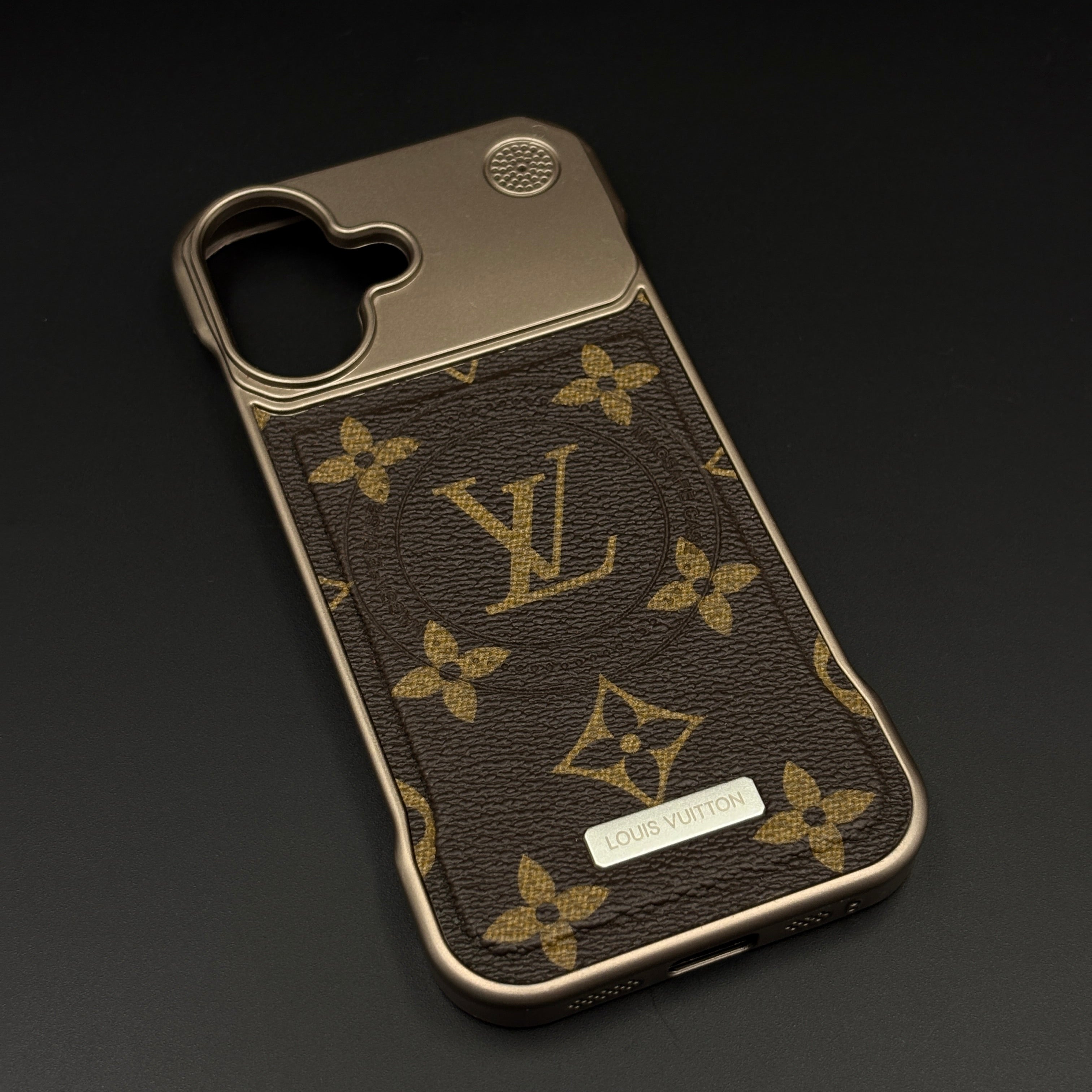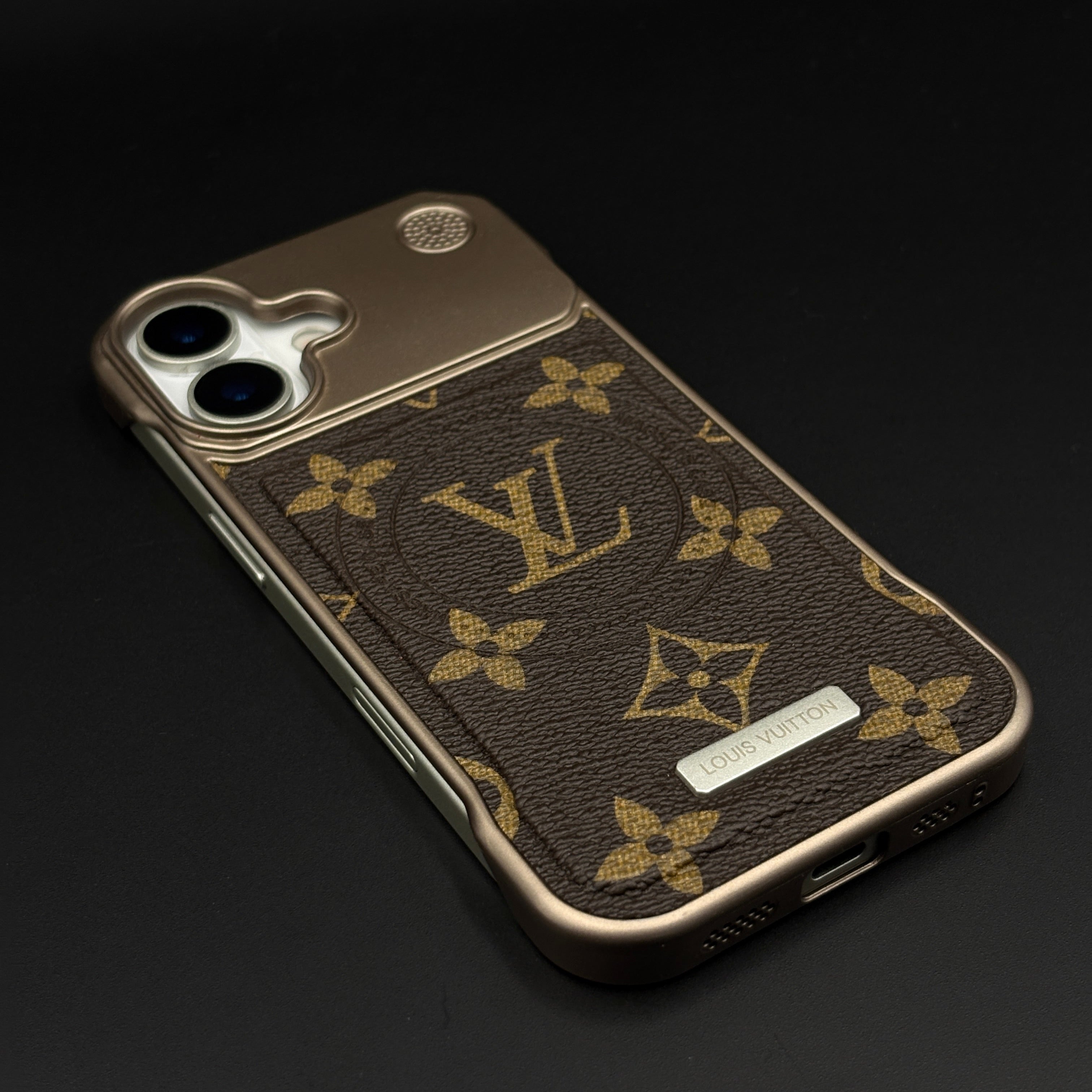 Upgrade your iPhone 17 with this vintage-inspired monogram leather case featuring deep brown tones and a refined textured finish. The metallic frame adds a premium edge, creating a timeless designer-style look.