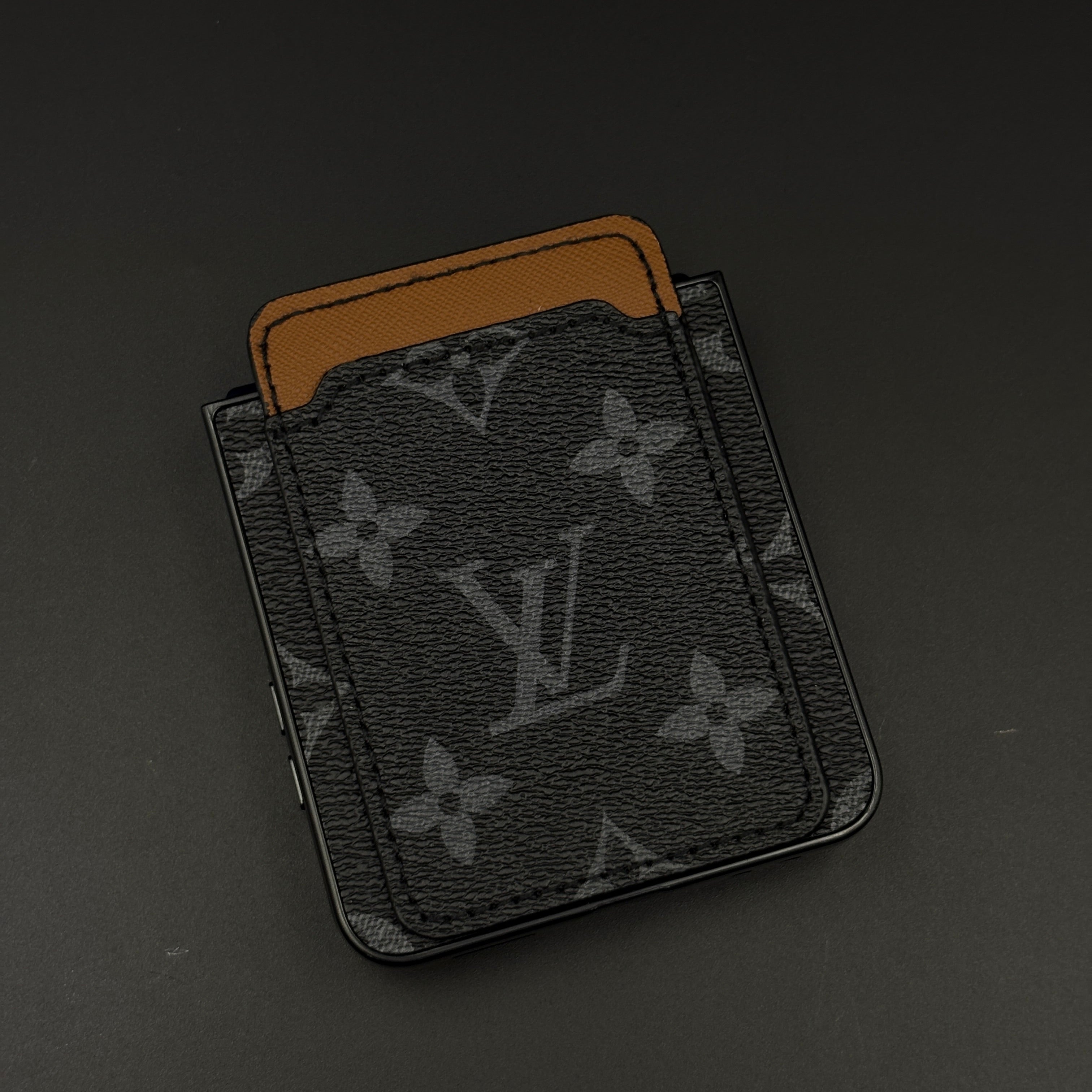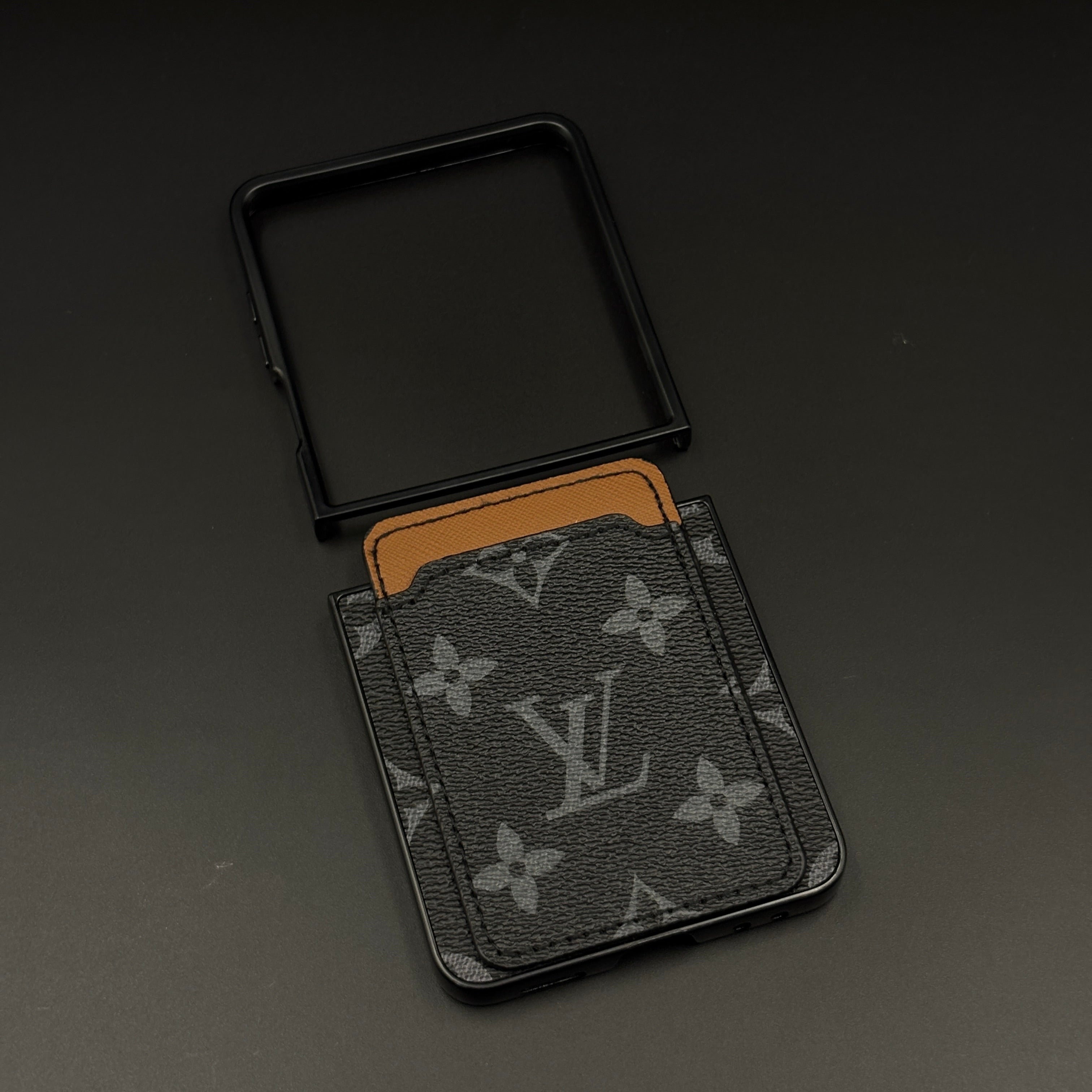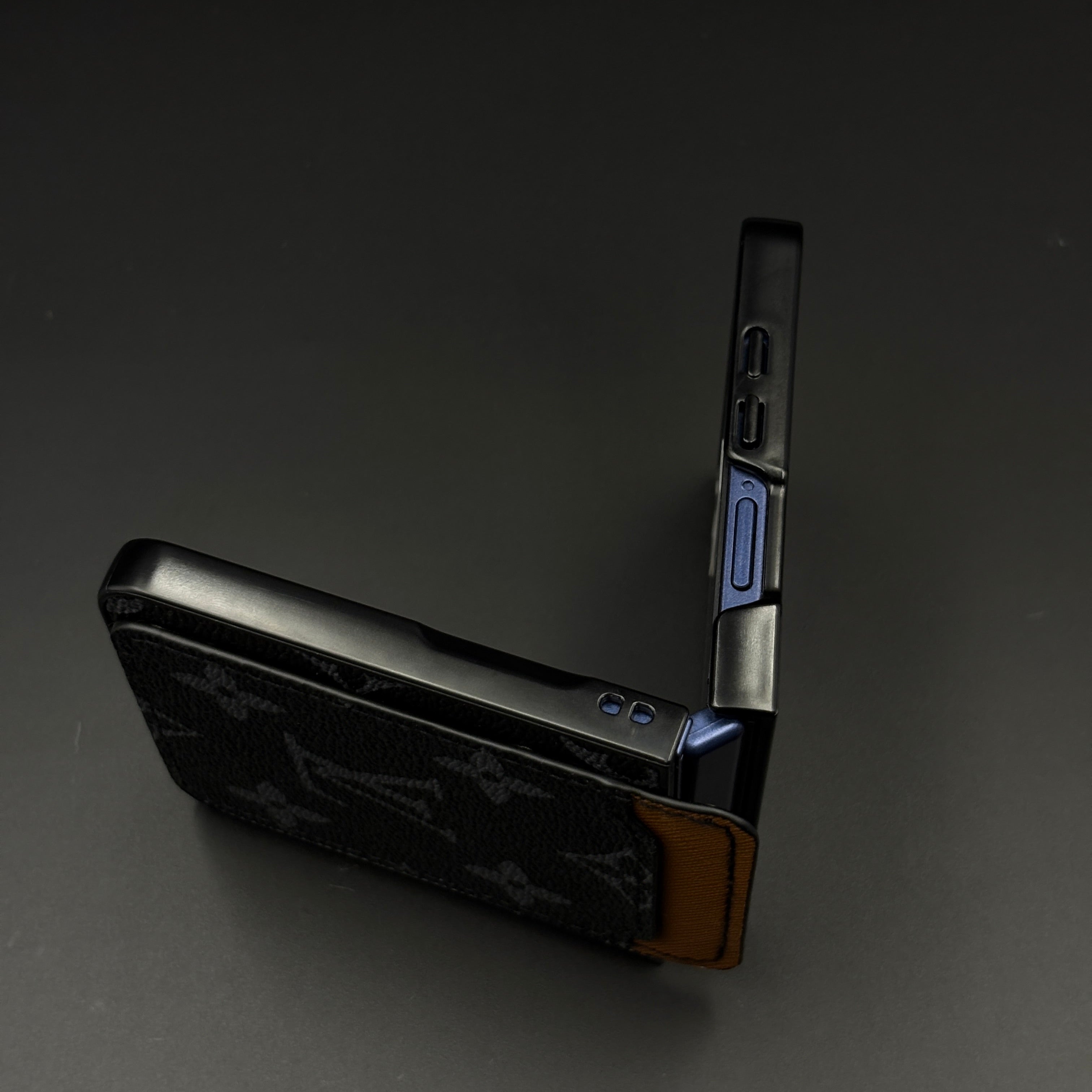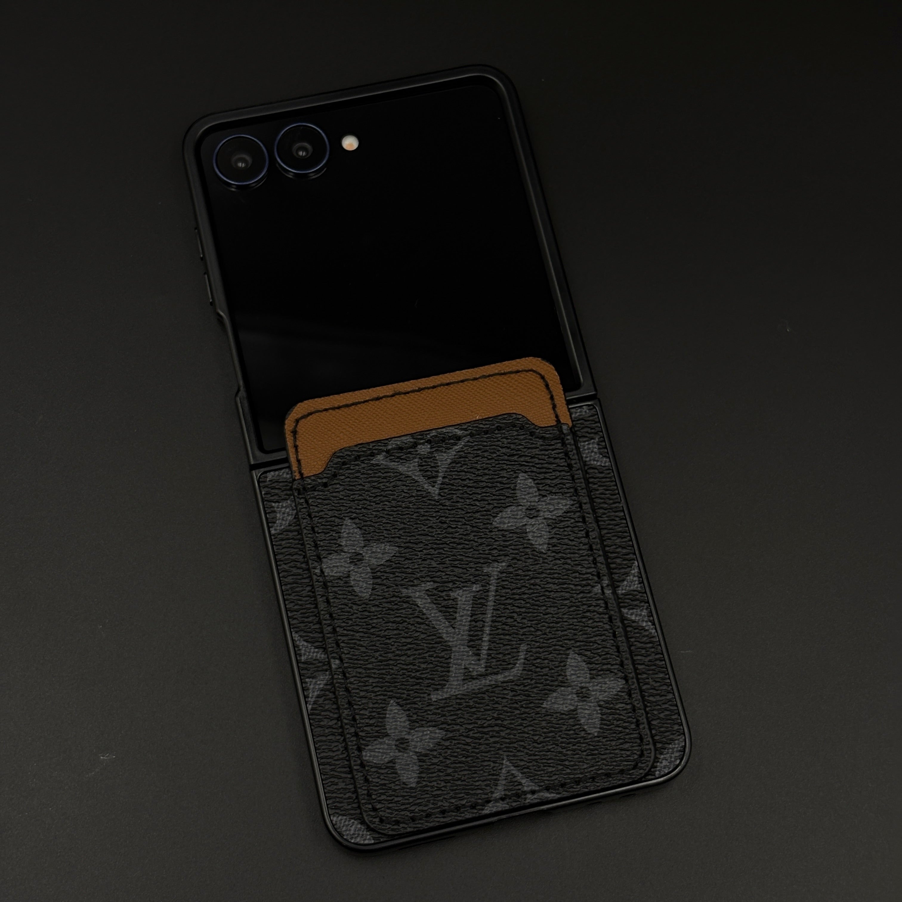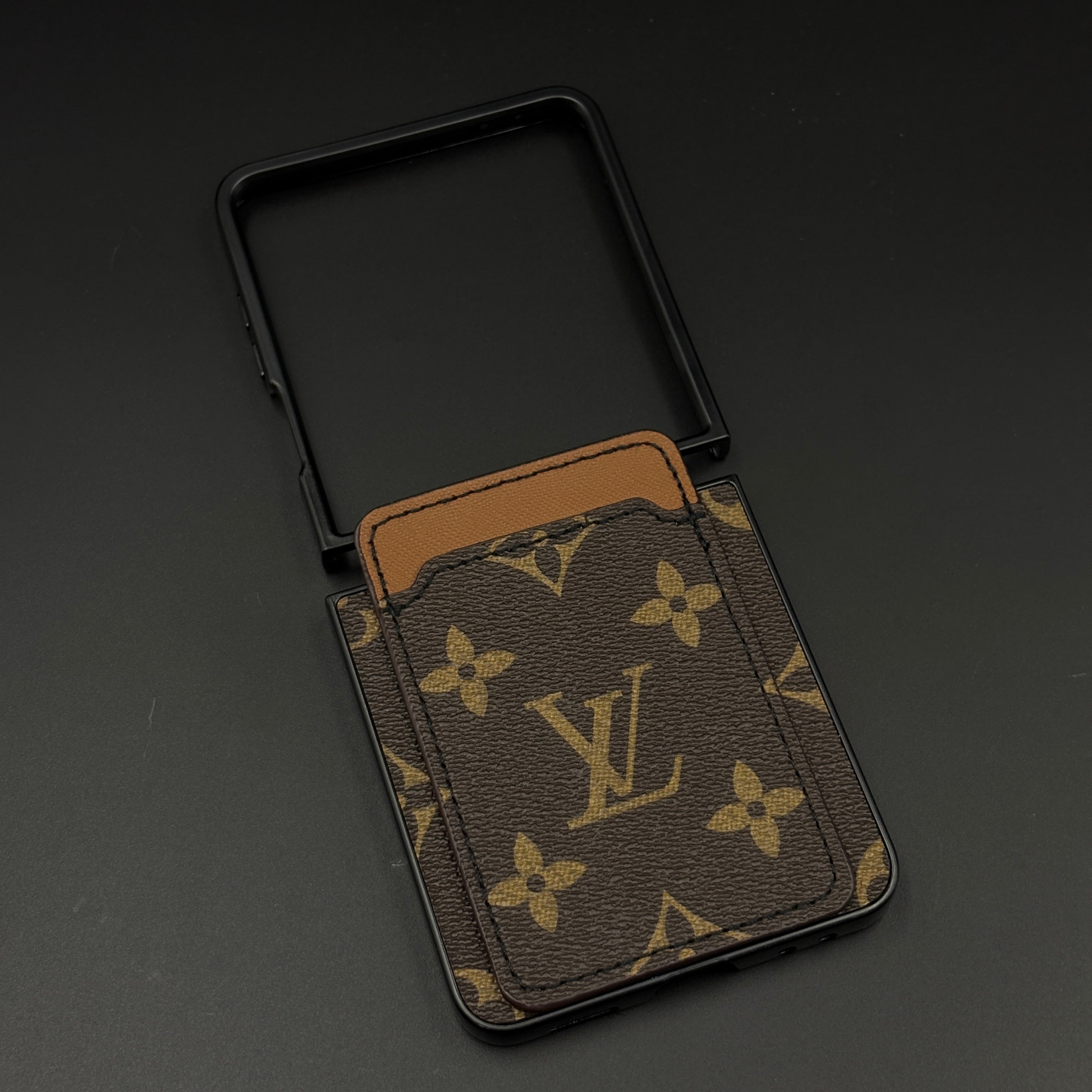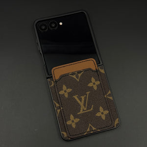Elevate your Galaxy Z Flip 7 with this luxury brown cardholder case—featuring classic monogram print, premium textured finish, and a built-in wallet slot for ultimate elegance and convenience.