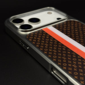 Luxury Fashion Stripe Monogram Metal Style Frame Case Cover for iPhone 17 Series