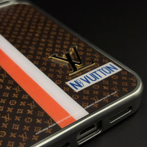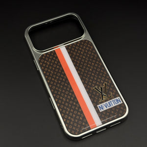 Give your iPhone a premium designer look with this luxury monogram metal style frame case cover — featuring a rich brown monogram background, bold contrast stripe, and a raised metallic letter emblem for a sophisticated fashion‑brand inspired finish.