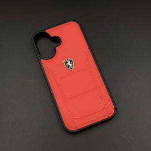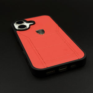 Luxury FR Stitched Leather Phone Case Cover for iPhone 17 | Iconic Red Design