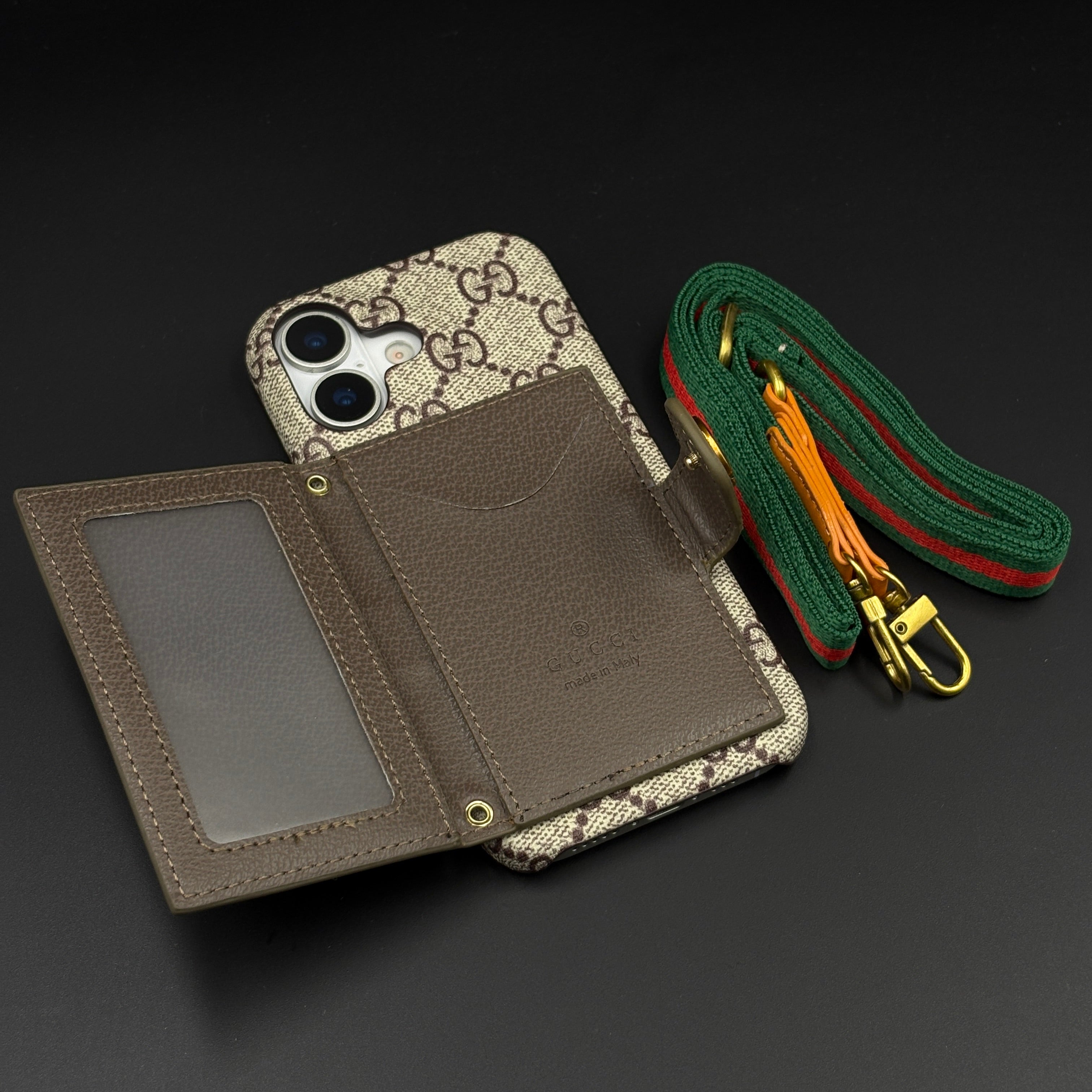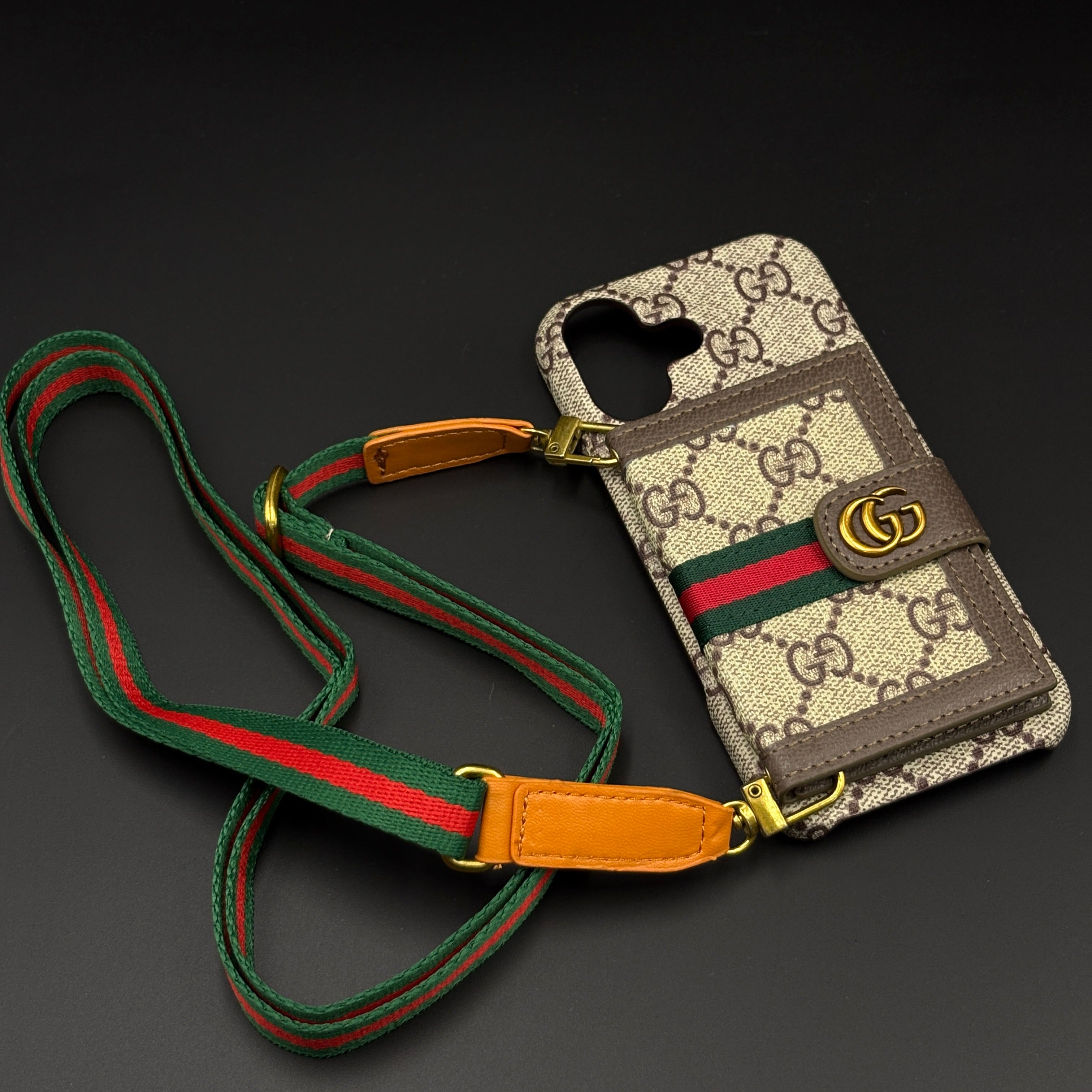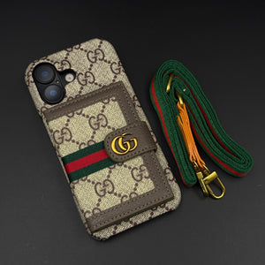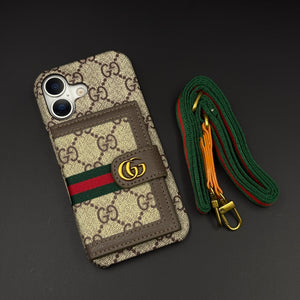 Luxury GG Wallet Case with Sling for iPhone 17 | Crossbody Strap | Card Holder