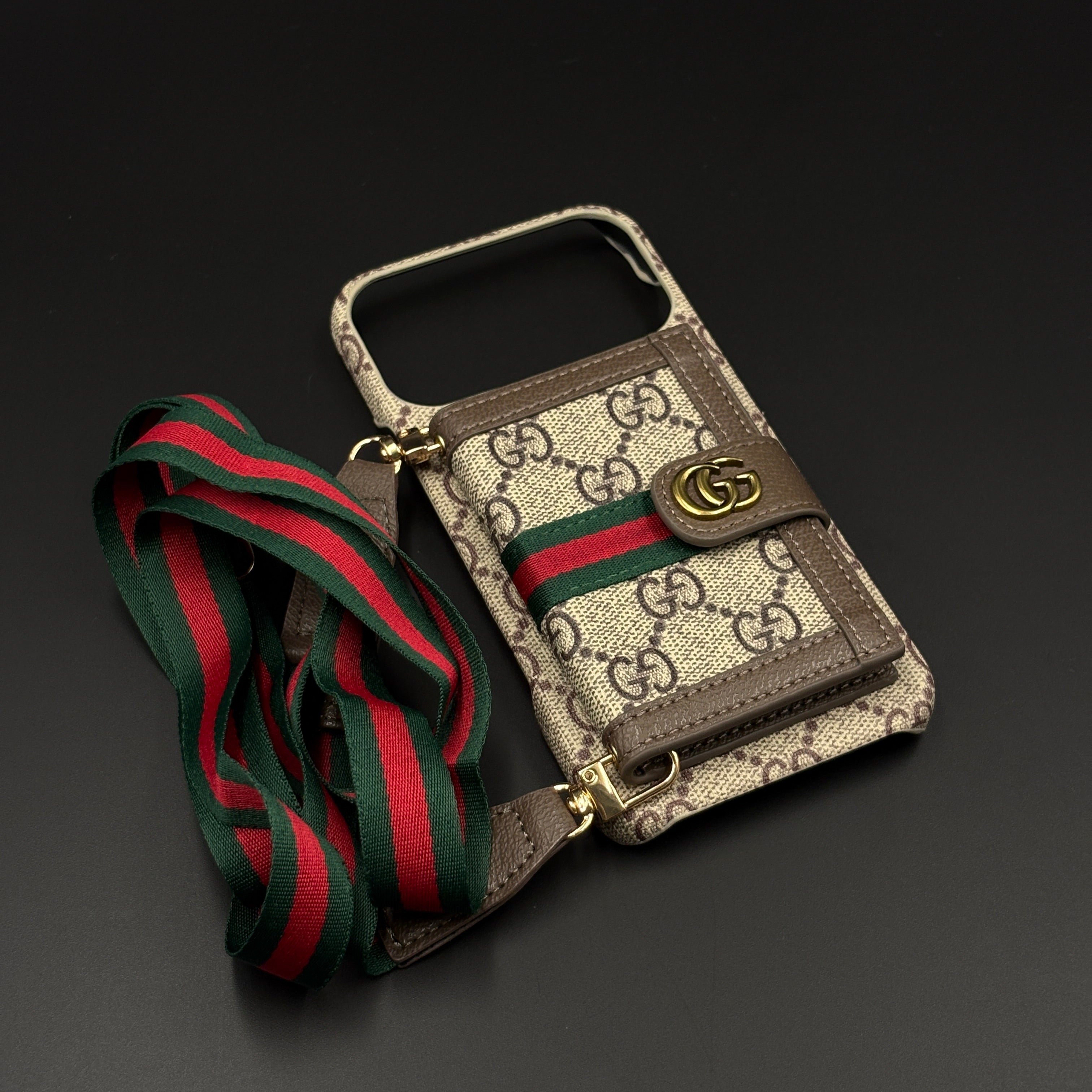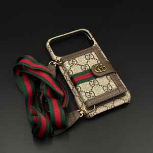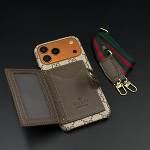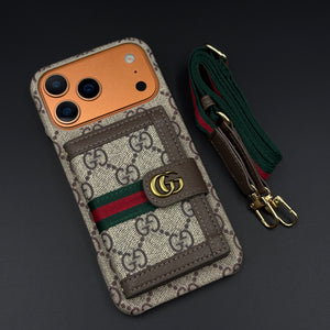 Luxury GG Wallet Case with Sling for iPhone 17 Series | Crossbody Strap | Card Holder