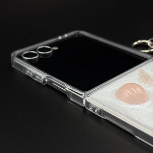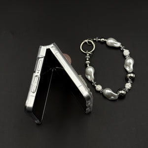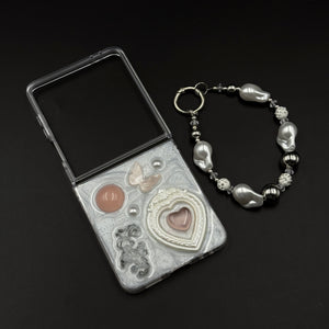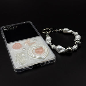 Luxury Heart Case with 3D Pearl Frame & Charm Strap for Samsung Galaxy Flip 7 | Elegant Protective Cover