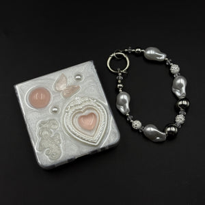 Add timeless elegance to your Galaxy Z Flip 7 with this luxury heart case featuring a 3D pearl-framed heart, embossed butterfly accents, and a detachable beaded charm strap. Designed for style, protection, and a premium feel.