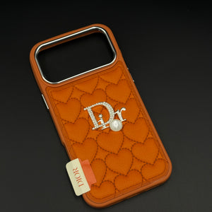 Wrap your iPhone 17 series in a chic, orange heart‑quilted leather case from the CD Pearl Diamond line, blending designer elegance with sparkling crystal details and a luminous pearl accent.