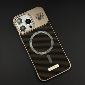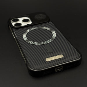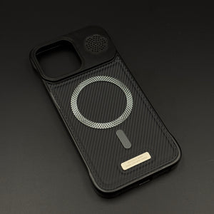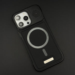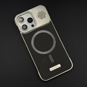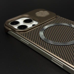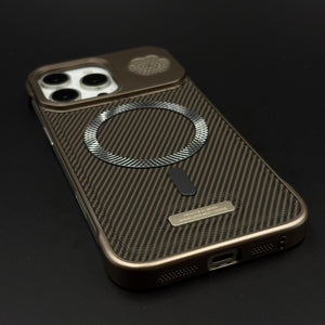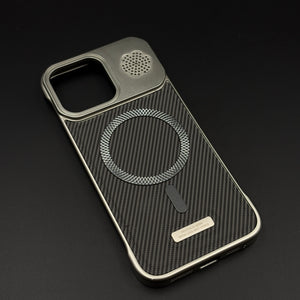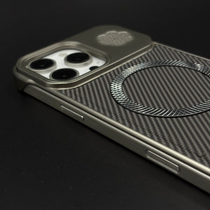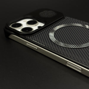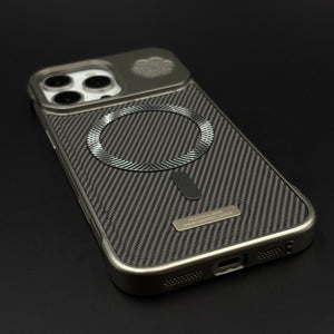 Enjoy luxury and high-tech style with this borderless dual-tone MagSafe case for iPhone . Designed with a modern metallic upper shell and carbon fiber texture below, it delivers premium grip, magnetic convenience, and all-around protection.