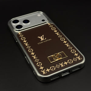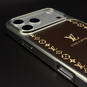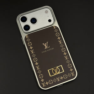 Luxury Monogram Border Metal Style Frame Brown Case for iPhone 17 Series | Premium Back Cover