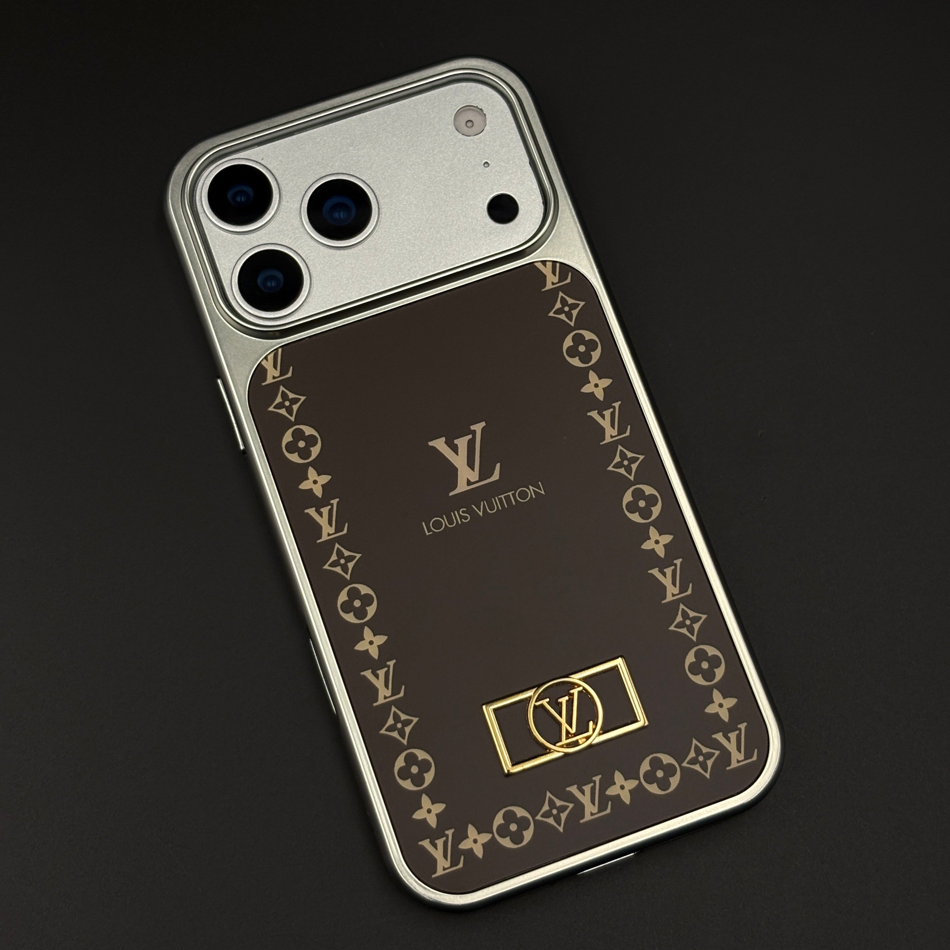 Give your iPhone 17 Series an elegant upgrade with this luxury-style monogram border case, featuring a sleek metal-look frame, rich brown back panel, and raised camera protection for everyday use.
