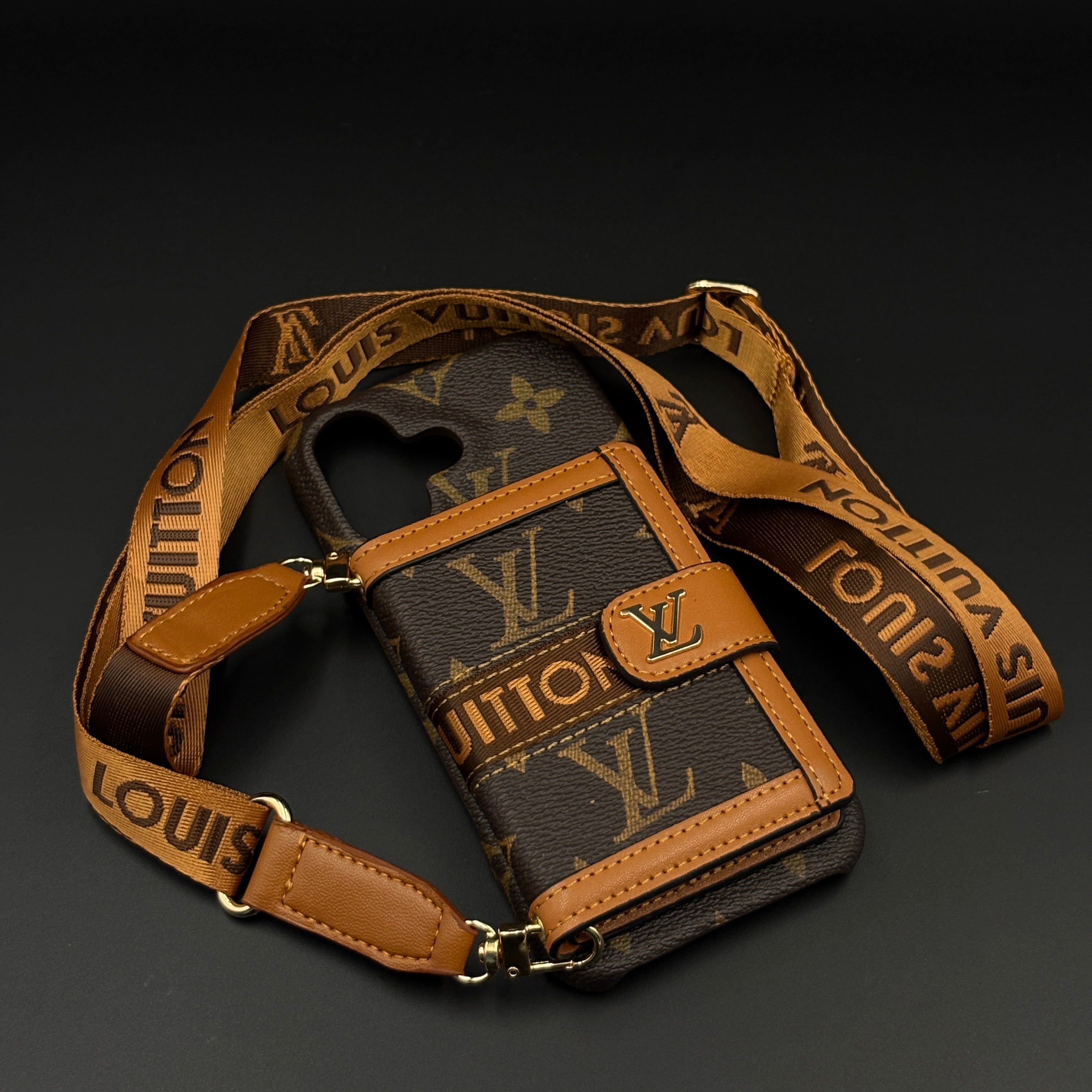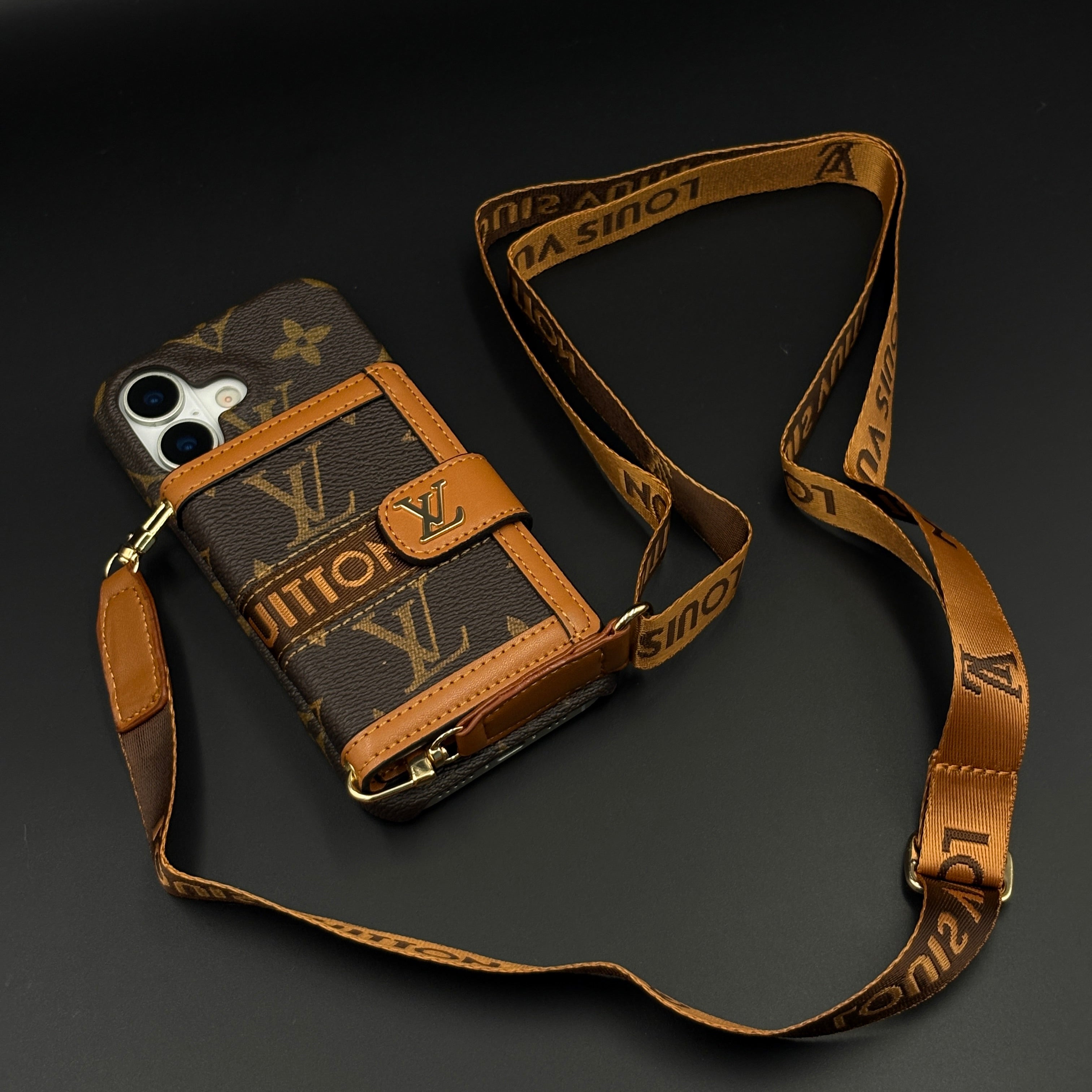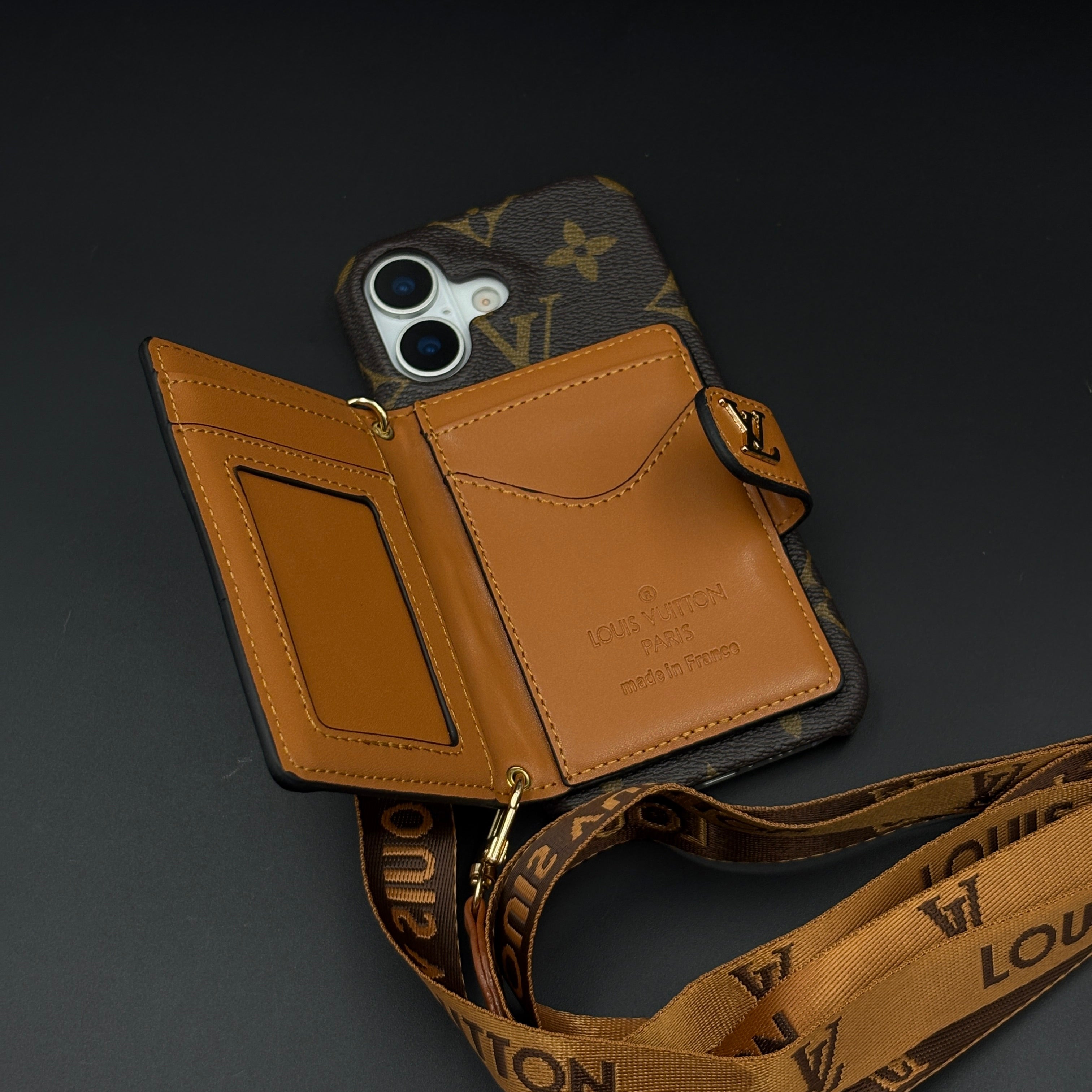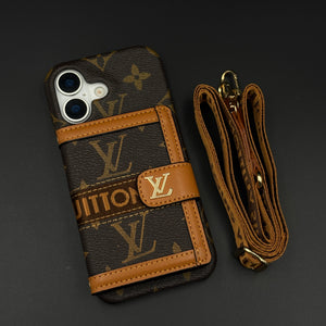 Luxury Monogram Cardholder Wallet Case with Crossbody Sling for iPhone 17 | Designer Brown Edition