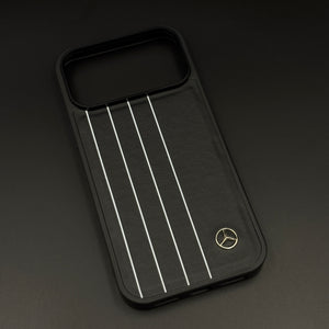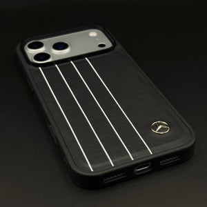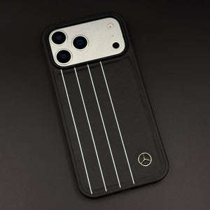 Luxury Triple Stripe Sports Car Merc Logo Leather Case for iPhone 17 Series | Slim Protective Back Cover