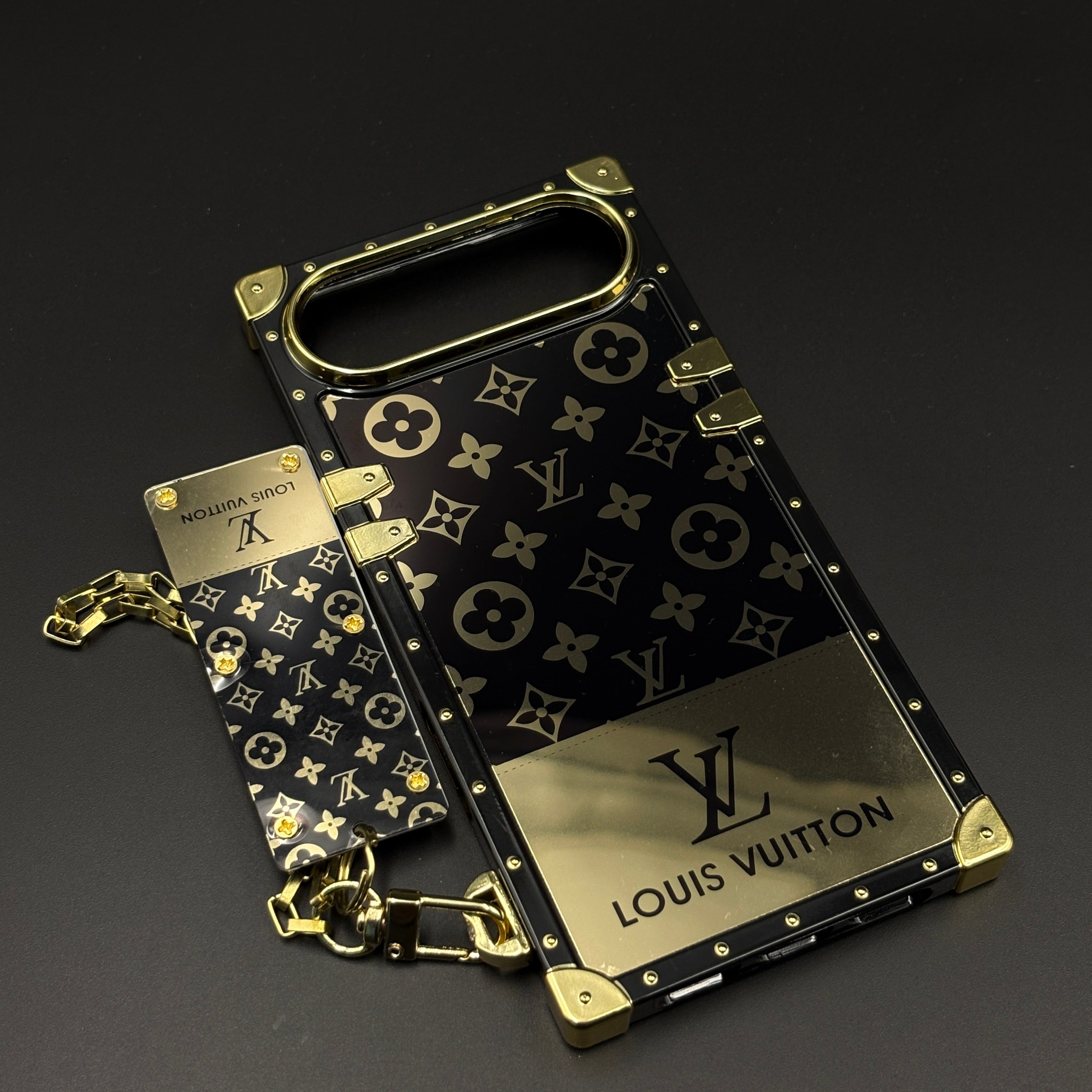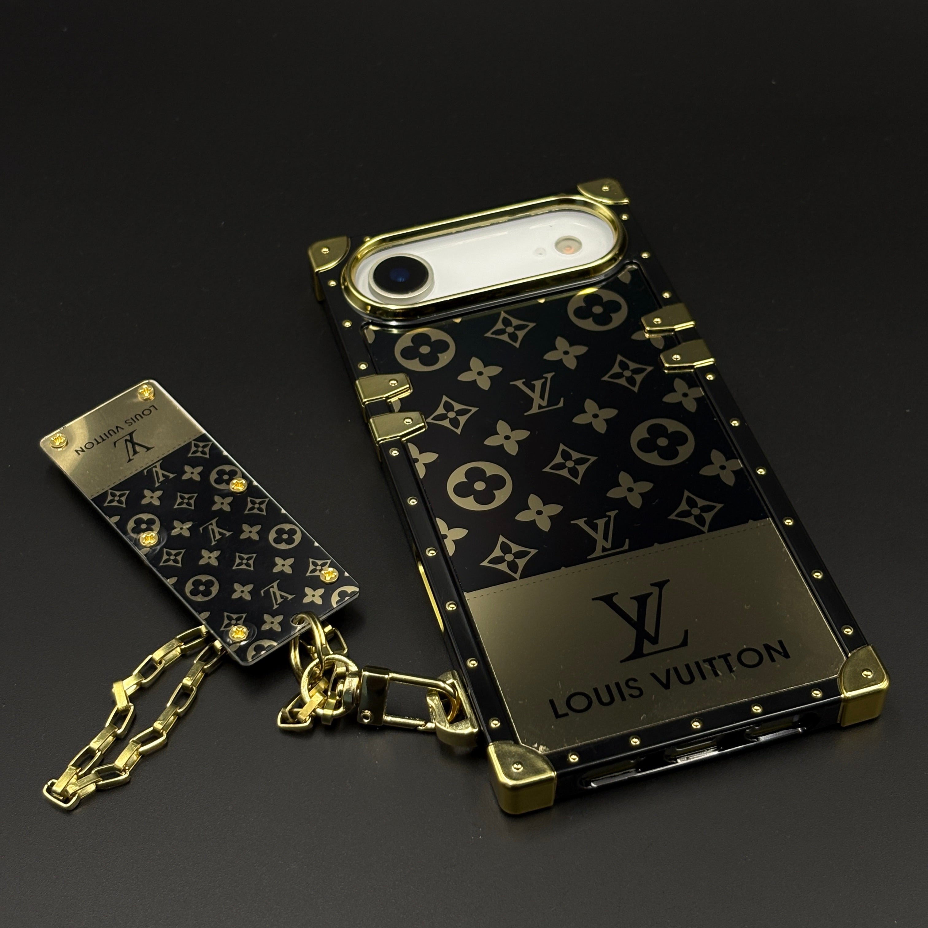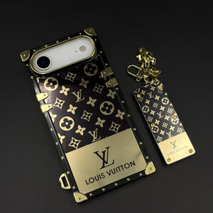 Give your iPhone 17 Air luxury upgrade with this designer trunk case—featuring gold-tone metal accents, iconic monogram print, and a matching detachable chain for premium fashion and full protection.