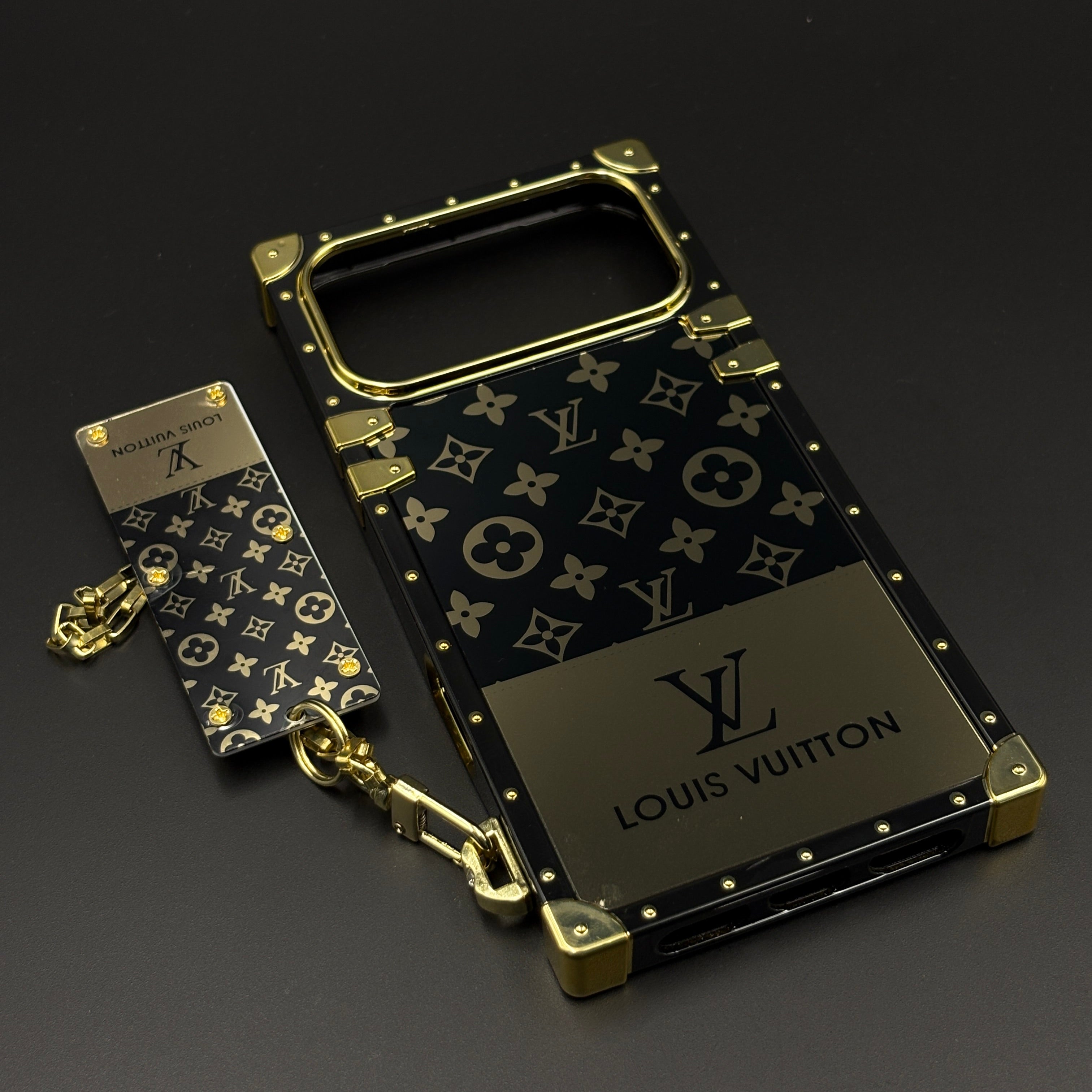 Give your iPhone 17 series a luxury upgrade with this designer trunk case—featuring gold-tone metal accents, iconic monogram print, and a matching detachable chain for premium fashion and full protection.
