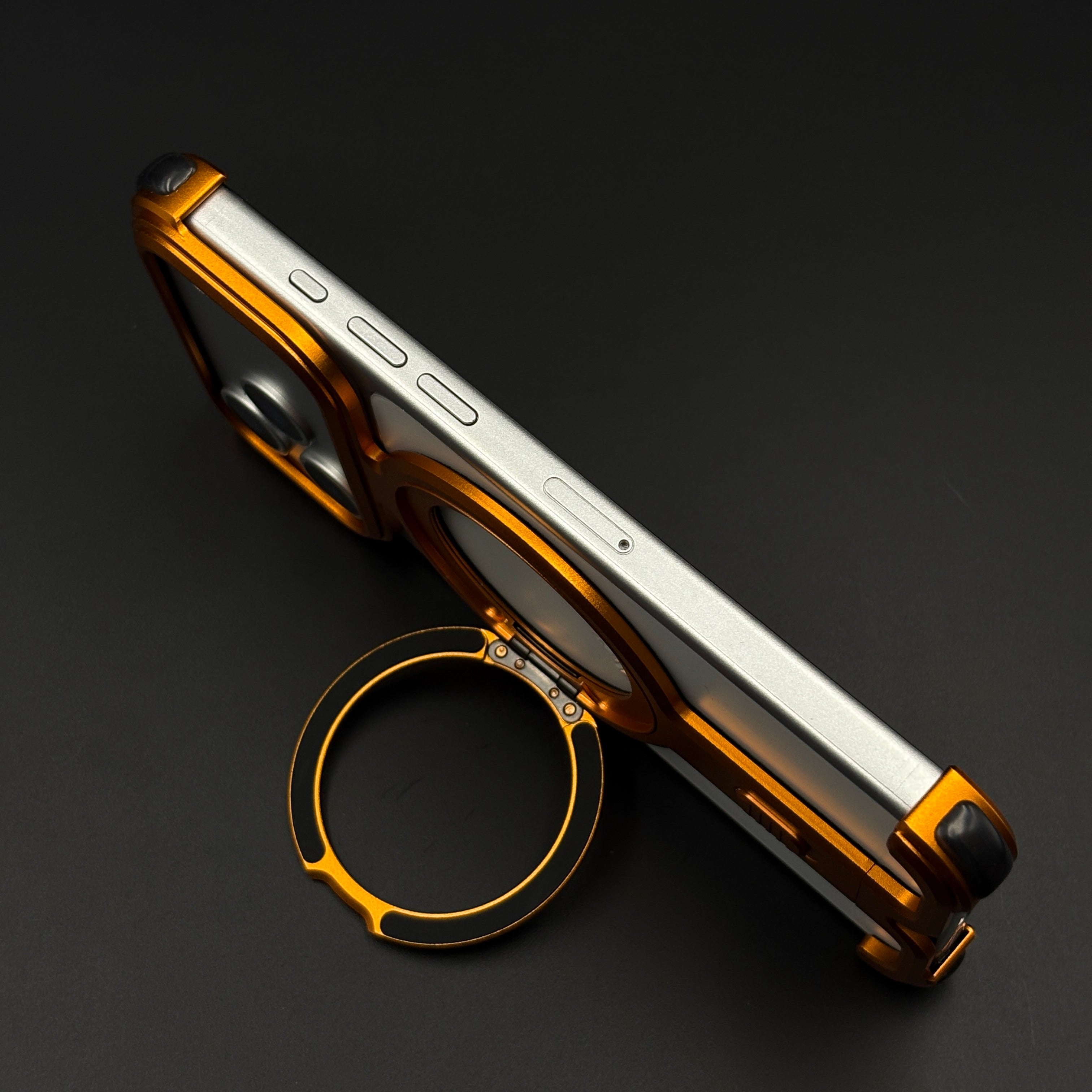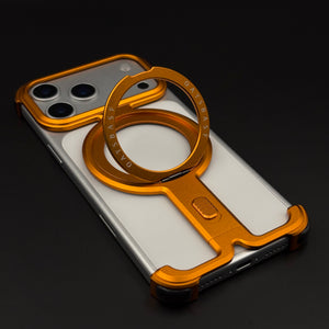Magnetic Orange Metal Ring Stand Mobile Case Cover for iPhone 17 Series | Industrial Bumper Grip