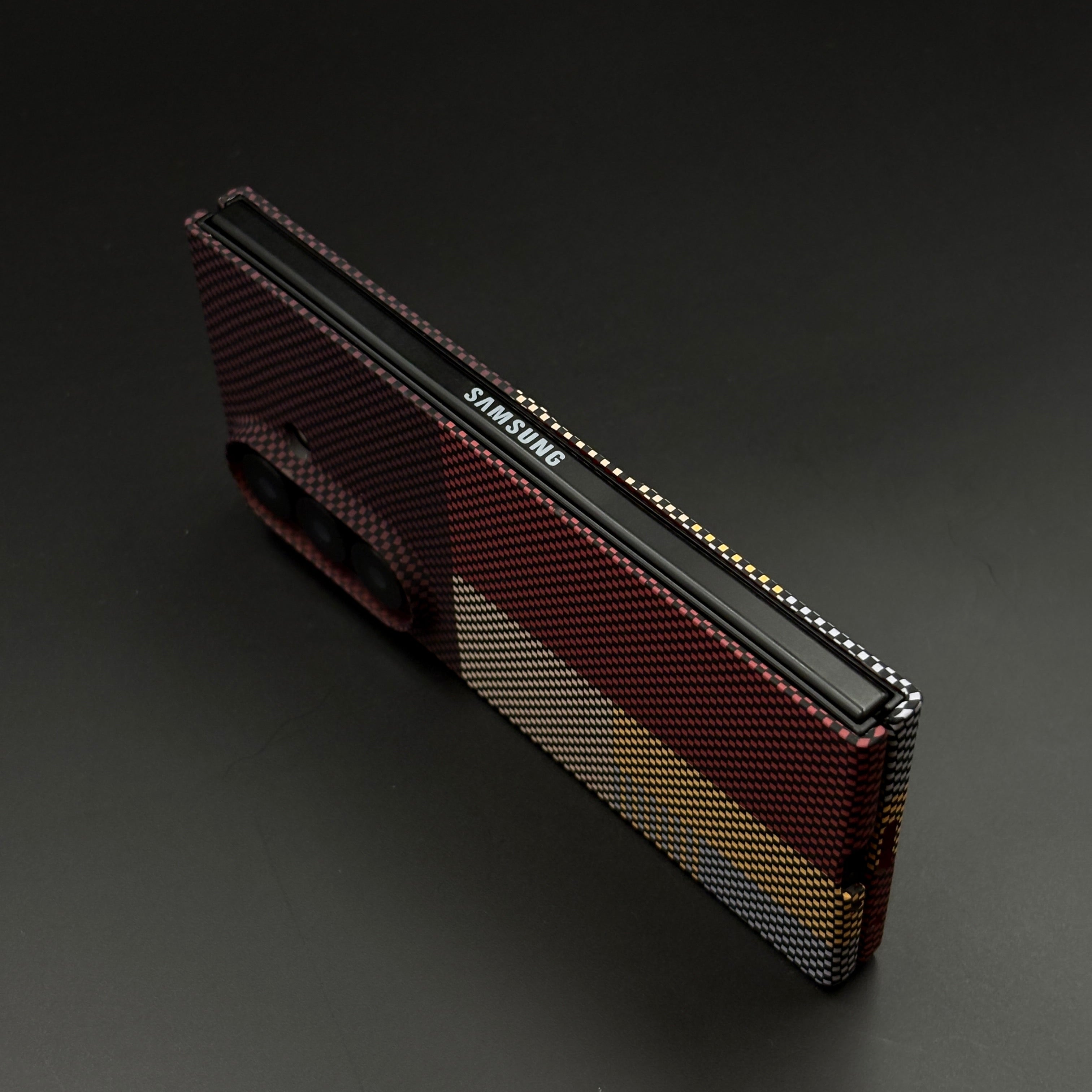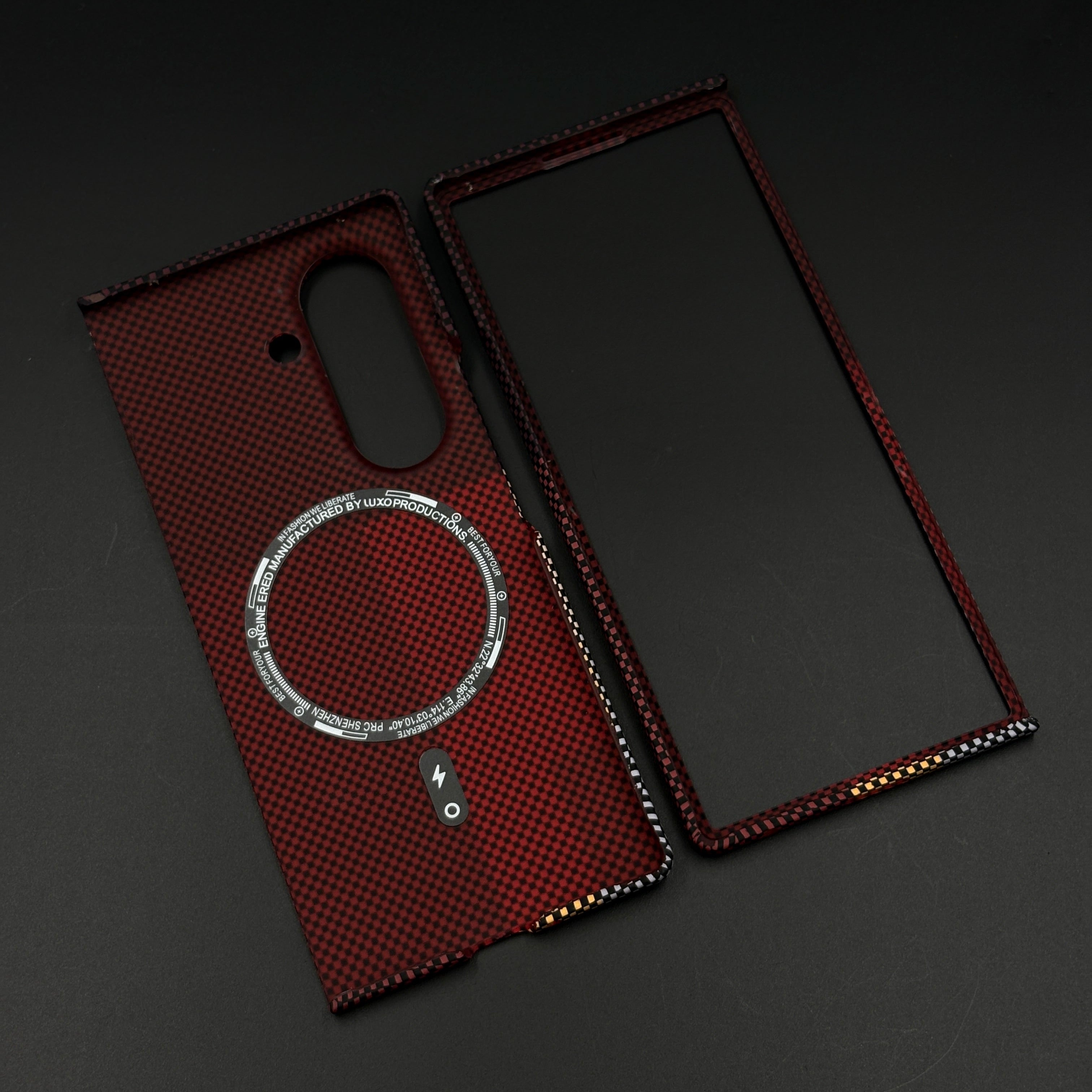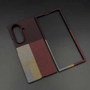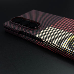 Maroon Block Aramid Case with Hidden MagSafe for Samsung Galaxy Z Fold 6 | Camera Kickstand | Carbon Fibre Feel