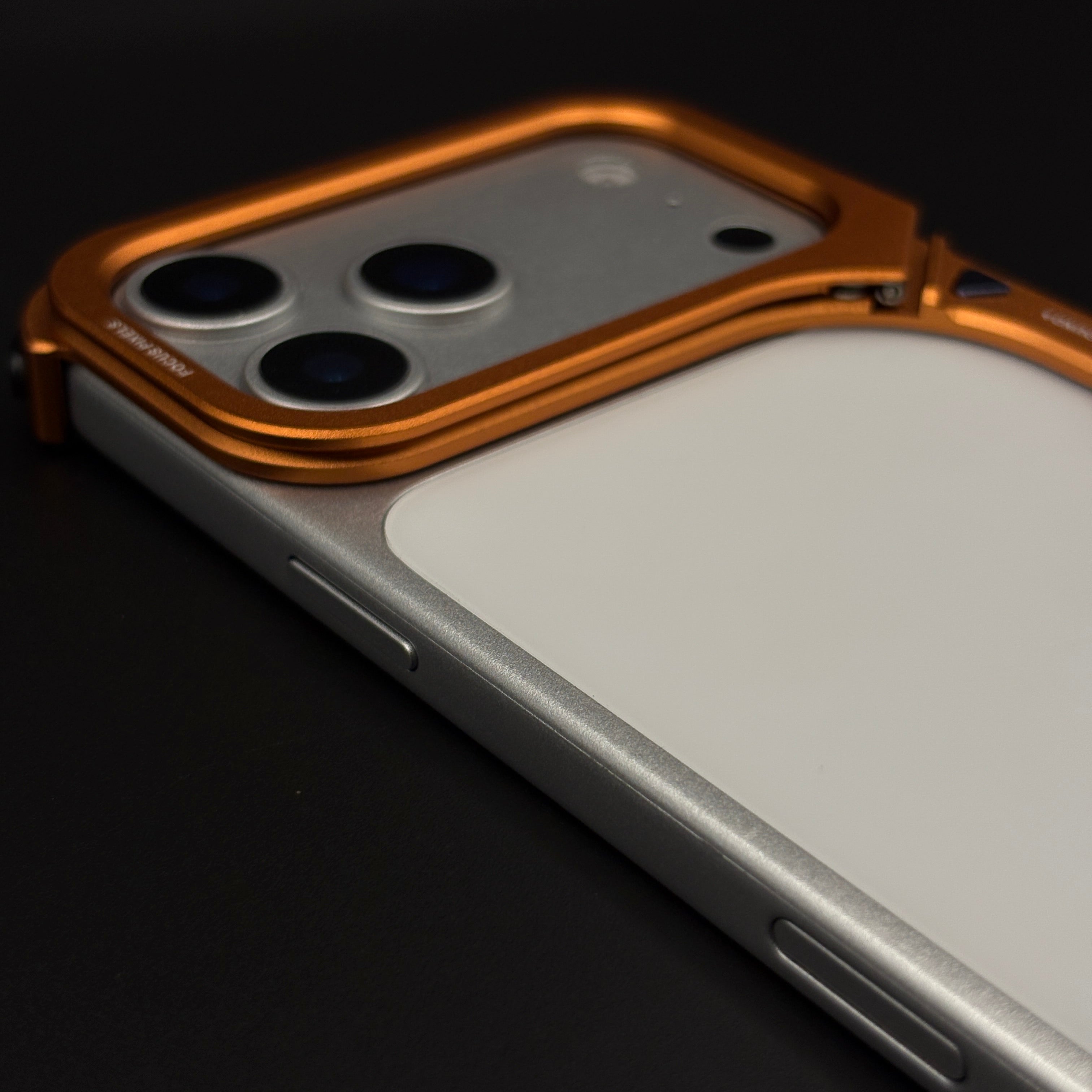 🛡️ CNC‑Style Metal Bumper – Rigid metal-look frame wraps around the edges and camera island to enhance impact resistance and deliver a bold mechanical aesthetic.