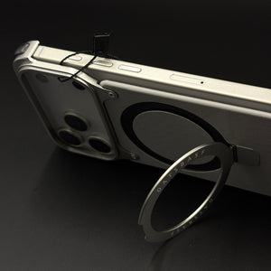 Protect your iPhone 17 Series with this bold metal case—featuring a built-in magnetic ring stand, reinforced corners, and a premium aluminum armor design for modern style and military-grade durability.