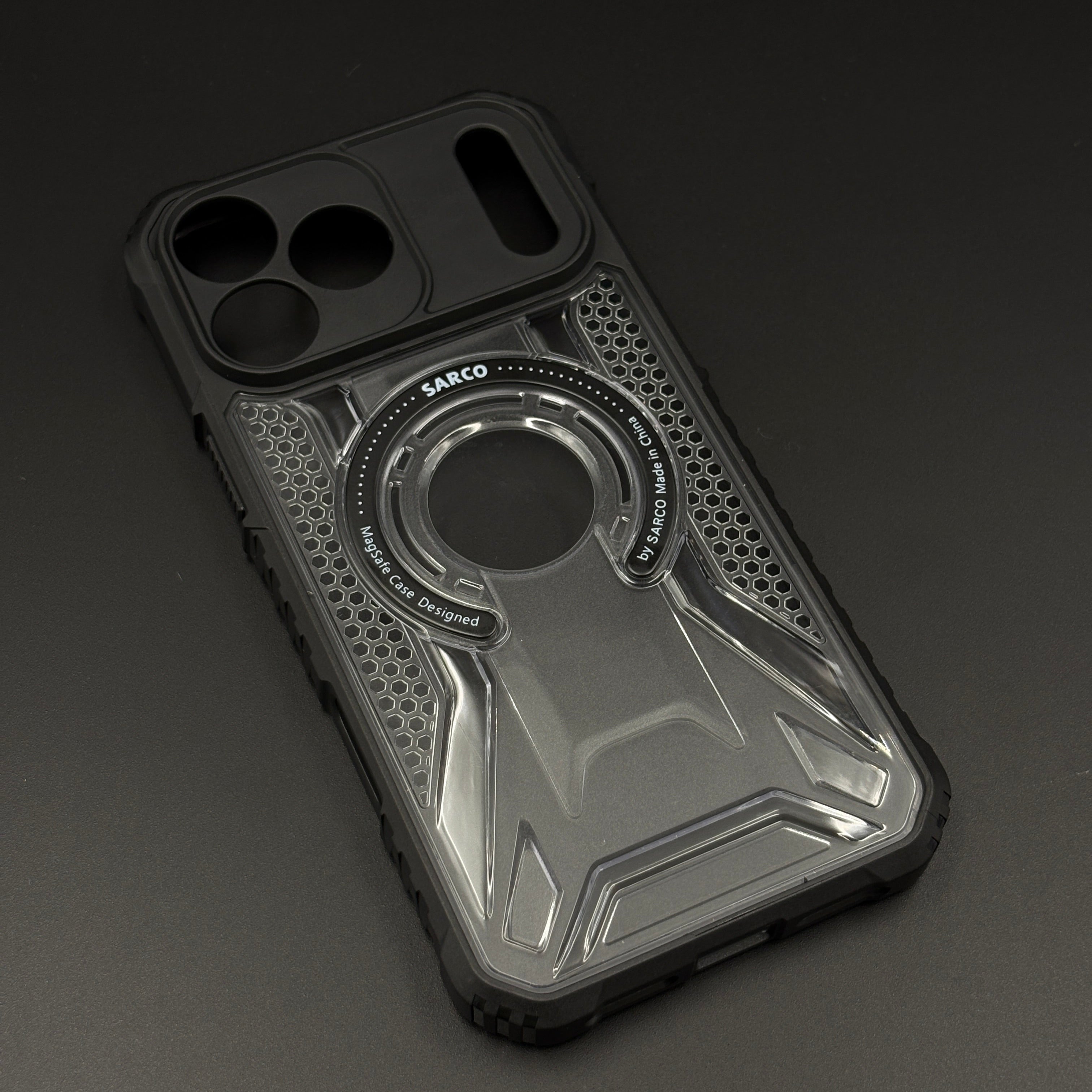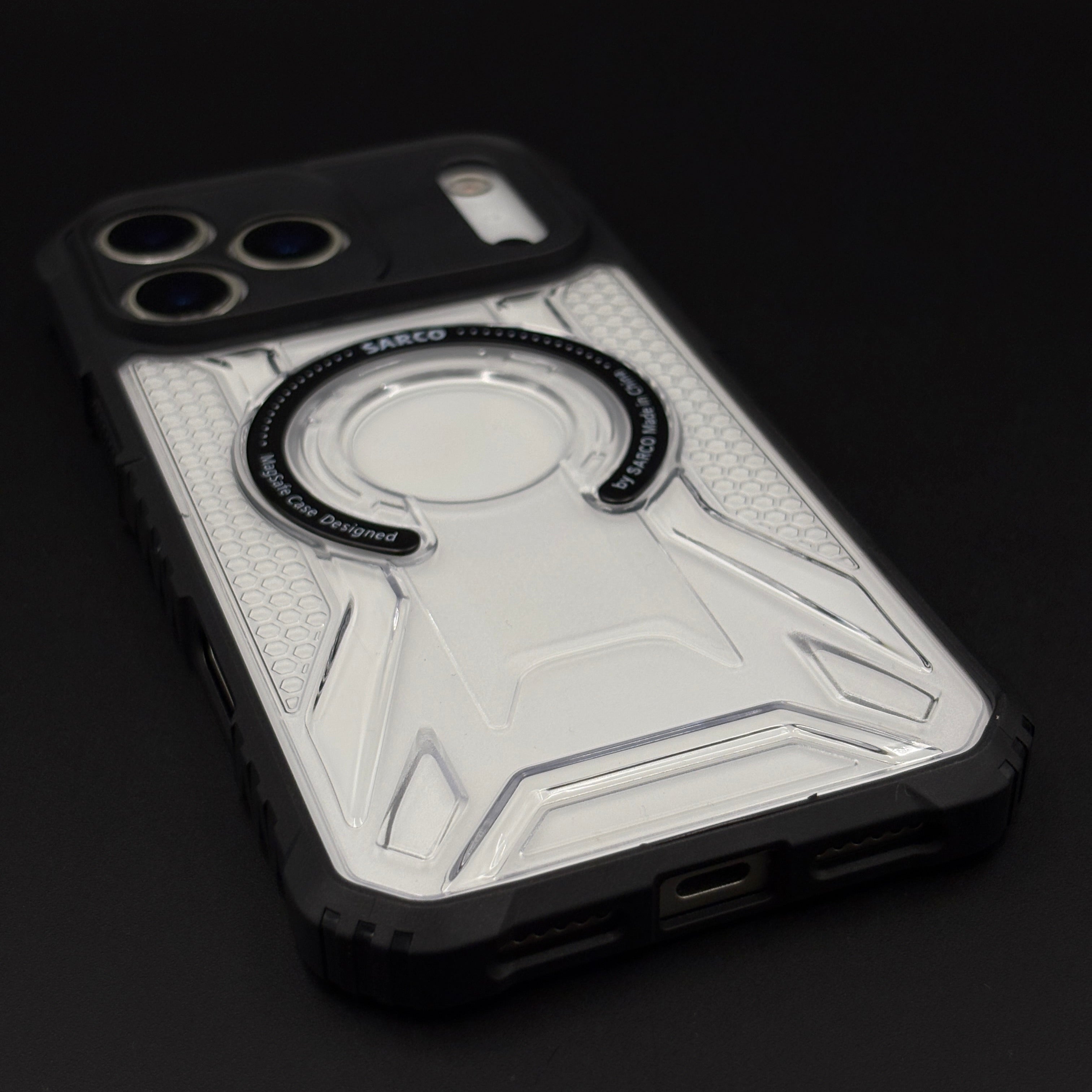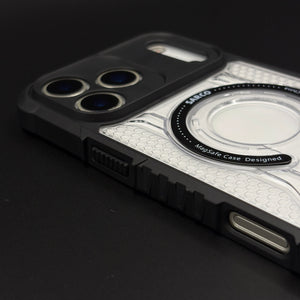 Defend your iPhone 17 Series with this military-grade reinforced MagSafe armor case—delivering shockproof protection, rugged corners, and flawless MagSafe charging in a transparent, futuristic design.