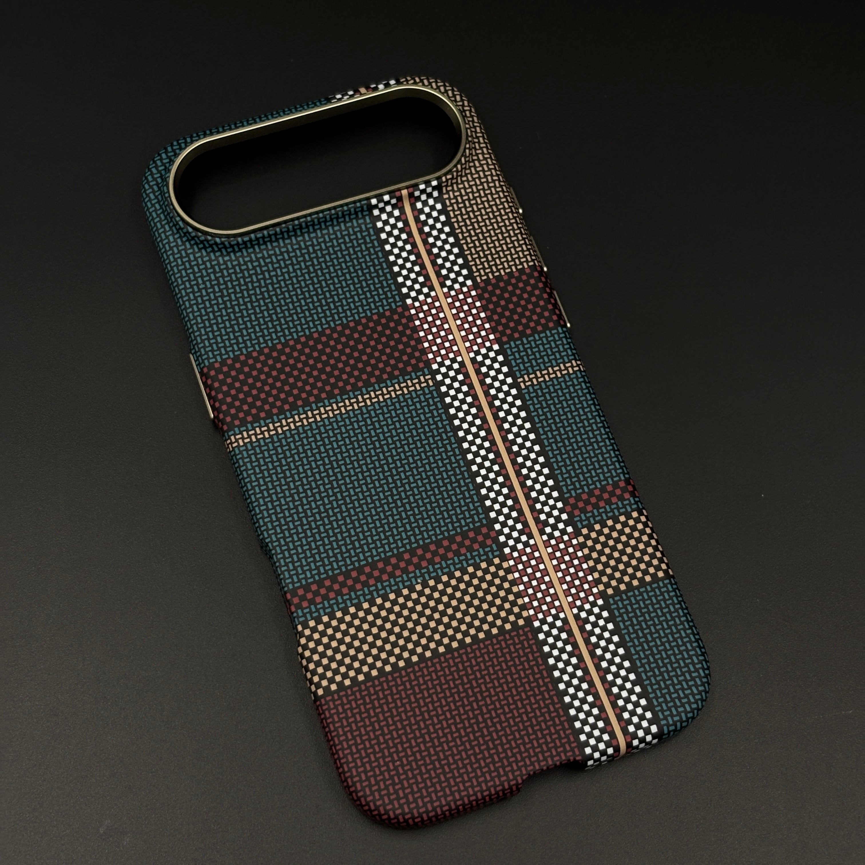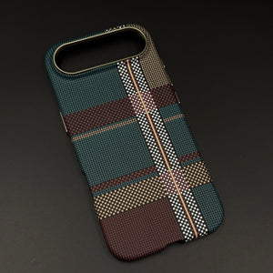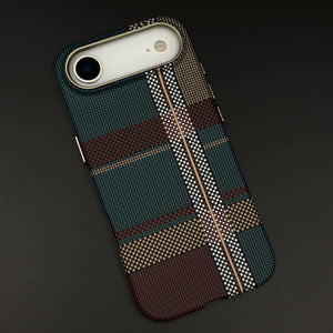 Minimalist Plaid Red Green Mobile Case Cover for iPhone 17 Air | Rare Aramid Texture Finish | Real Carbon Fibre Feel | Hidden MagSafe