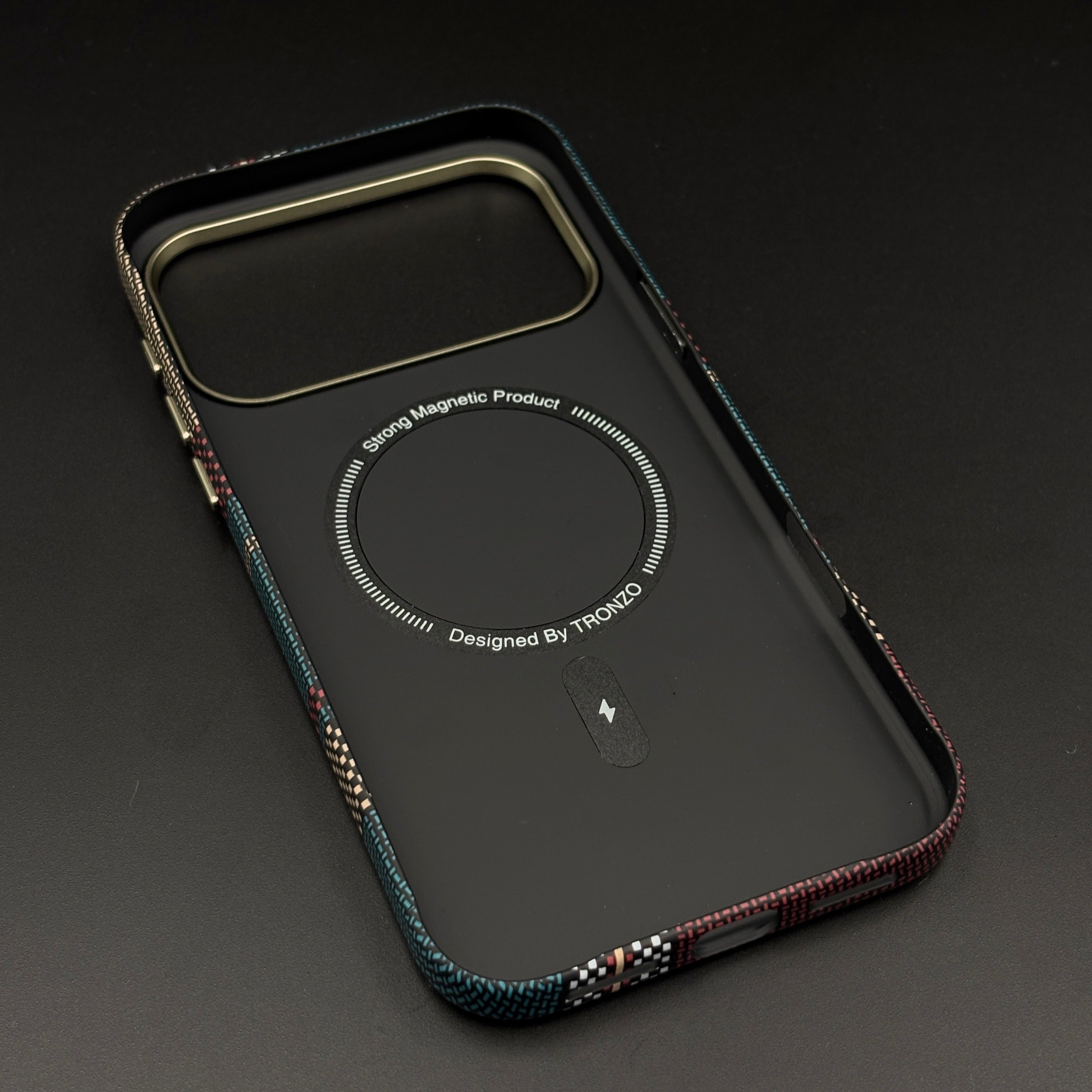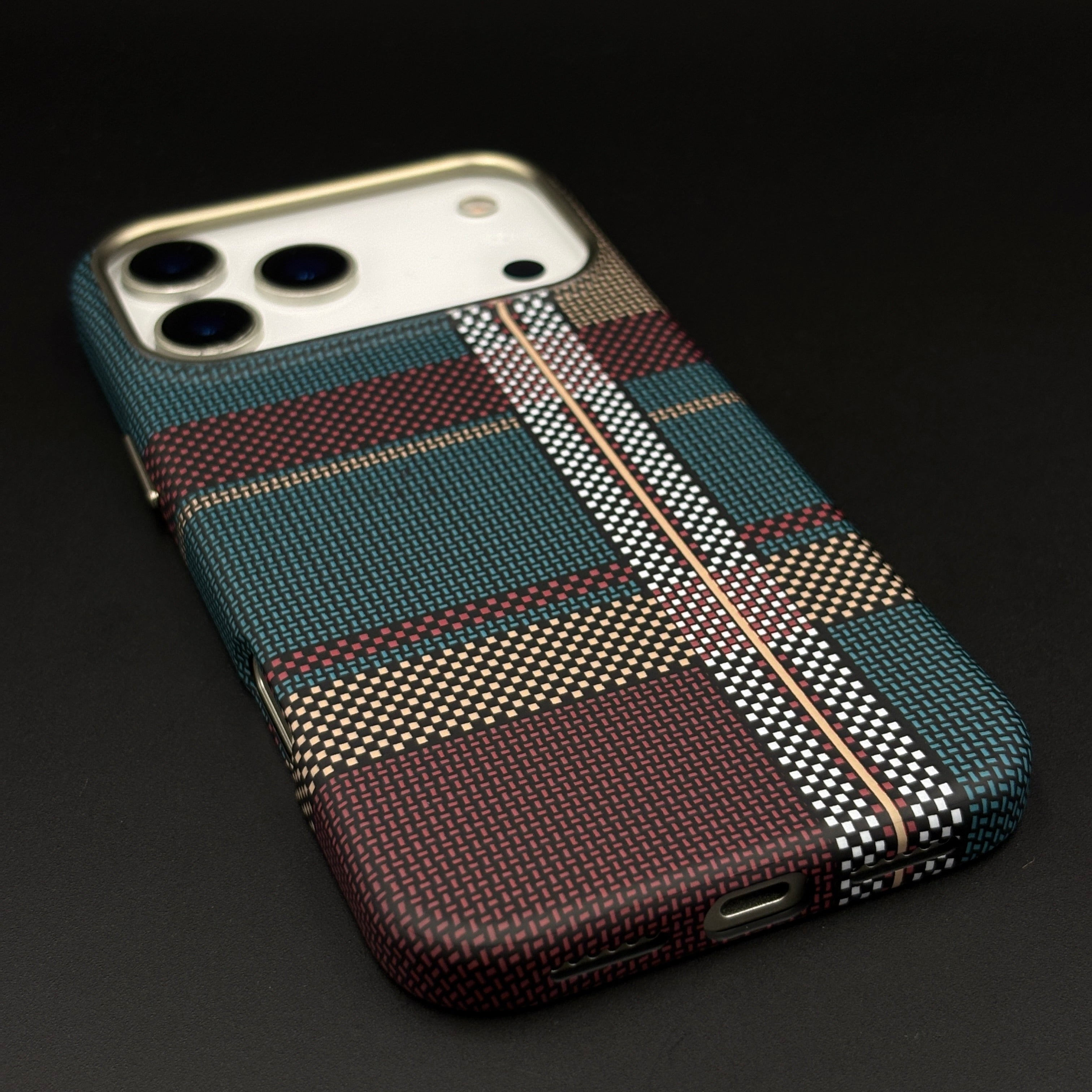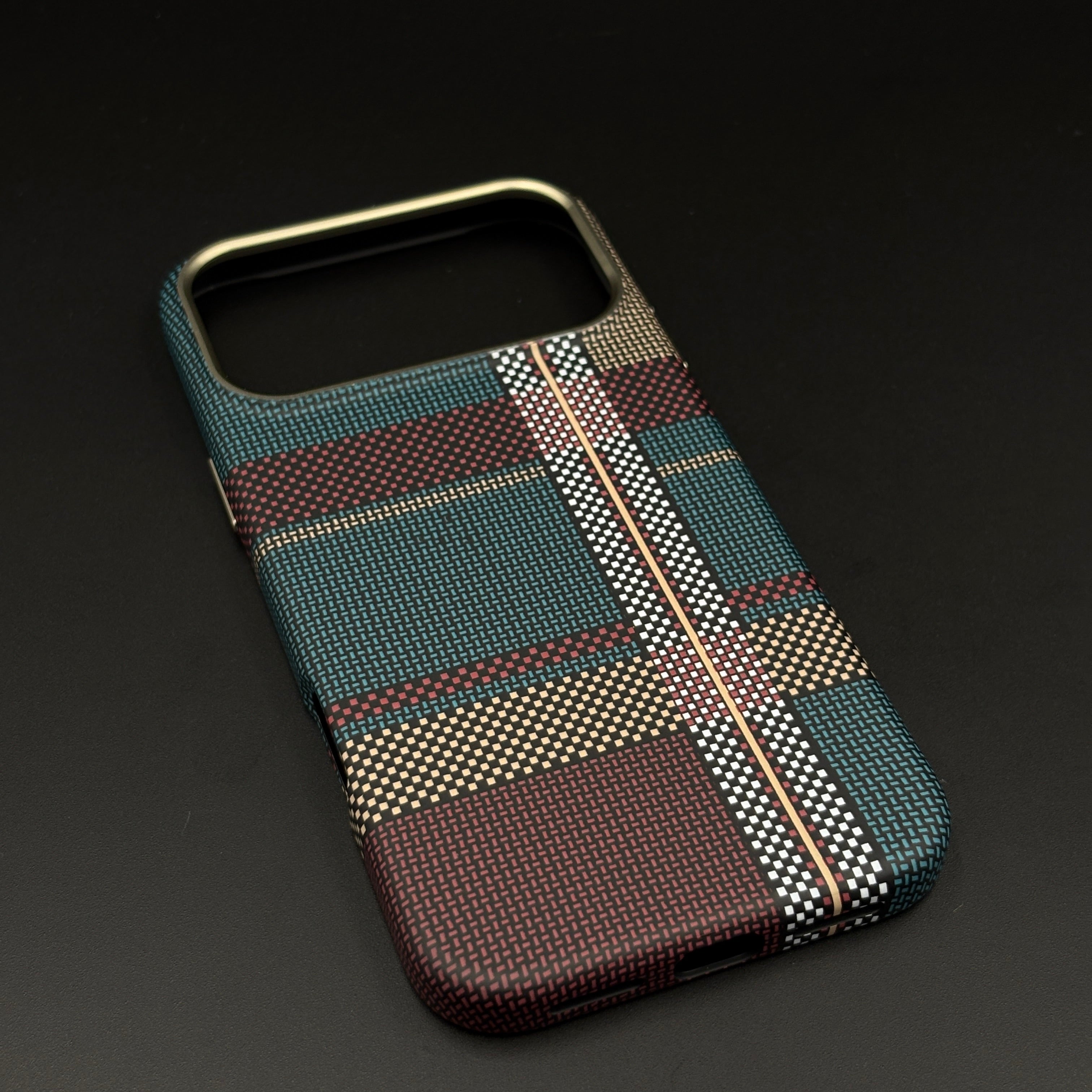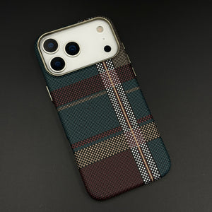 Minimalist Plaid Red Green Mobile Case Cover for iPhone 17 Series | Rare Aramid Texture Finish | Real Carbon Fibre Feel | Hidden MagSafe