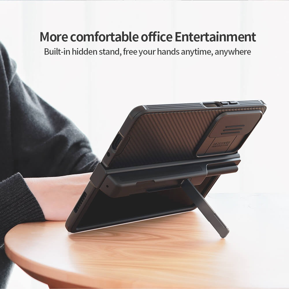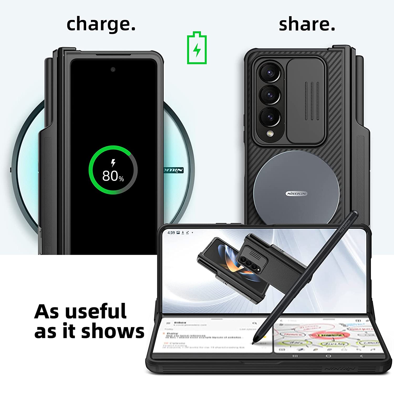 For Samsung Galaxy Z Fold 4 :- Nillkin CamShield Pro Case For Samsung Galaxy Z Fold 4 Case with S Pen Holder with Kickstand with Hinge Protection and Sliding Camera Cover, For Samsung Galaxy Z Fold 4 5G - 2022. Not Compatible With Other Phone Model.