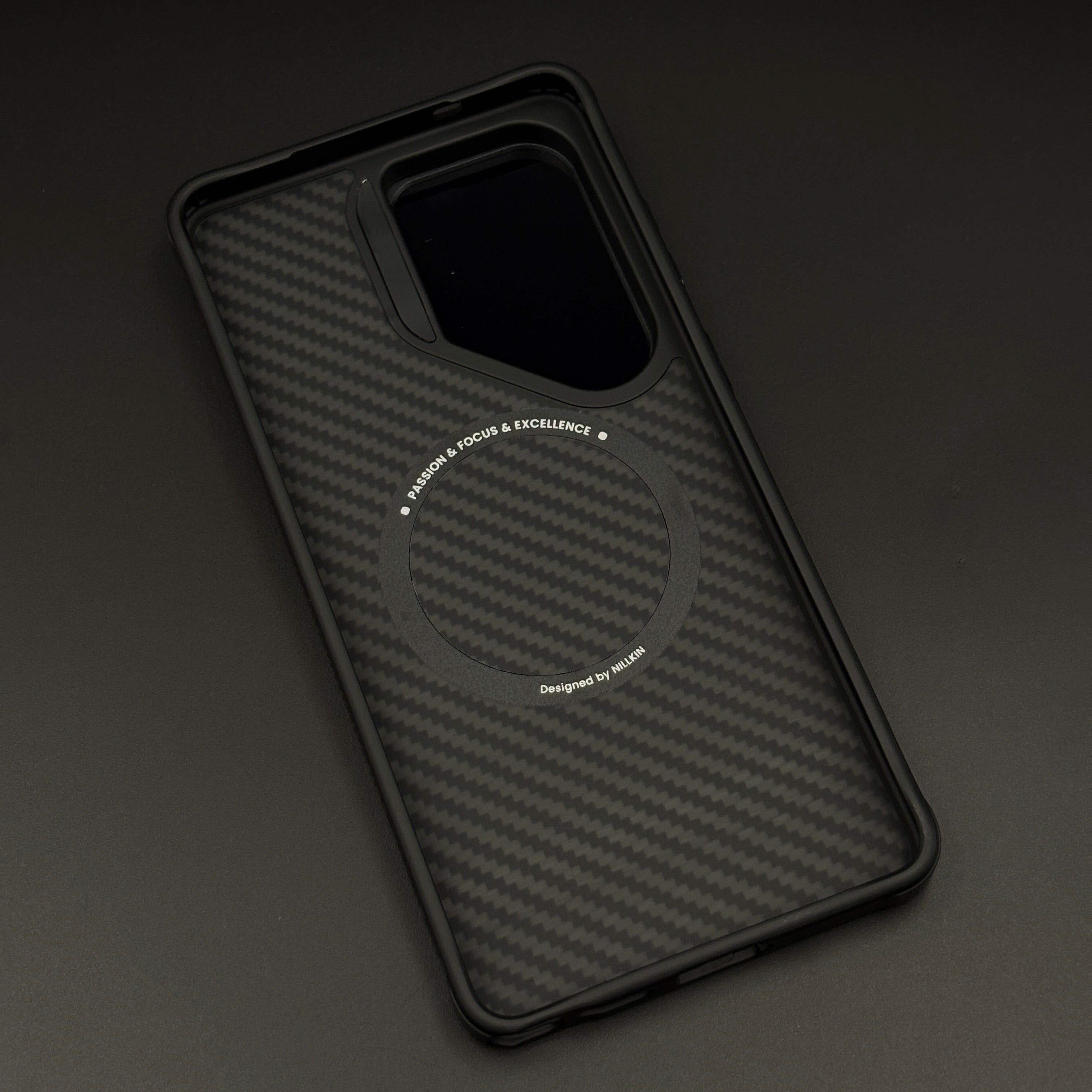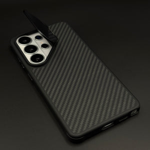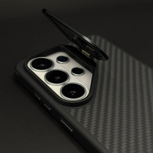 Secure your Samsung Galaxy S26 Ultra with this Nillkin-inspired carbon fiber case—packing hidden MagSafe, slim shockproof design, and a pop-out kickstand for hands-free viewing.