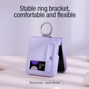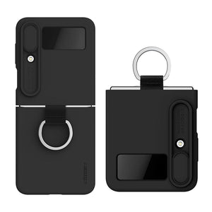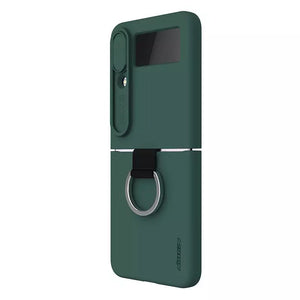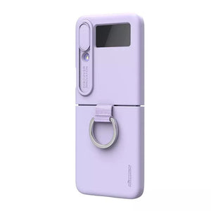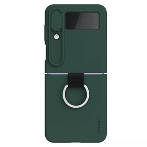 CamShield Silky Silicone Case combines fashion, feel and protection for Samsung Galaxy Z Flip4. Add the creative ring bracket for phone, adopt foldable structure at 180°. Using food-grade liquid silicone features delicate and soft touch, elegant and extraordinary texture. Patented lens sliding cover not only prevents phone camera from scratching, but phone's privacy from disclosure. It's surface of the case is coated with AF coating which effectively protects against fingerprints, sweat and oil stains. Soft fibers inside offers protection to your phone's body from wear.
