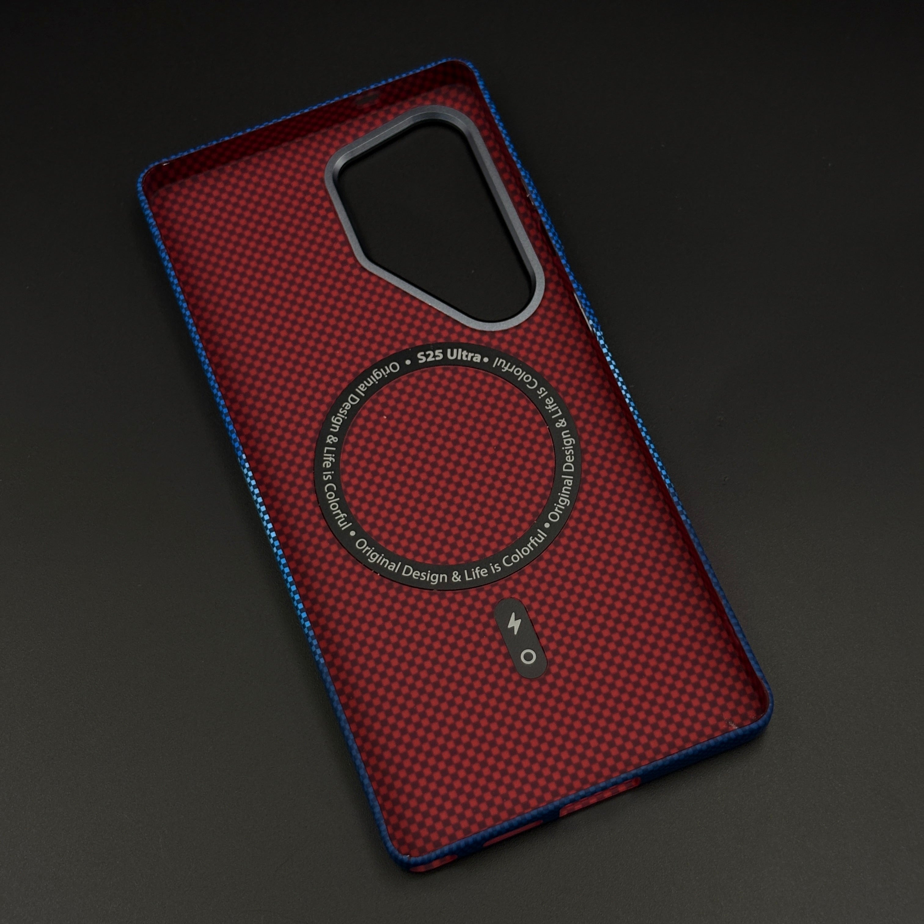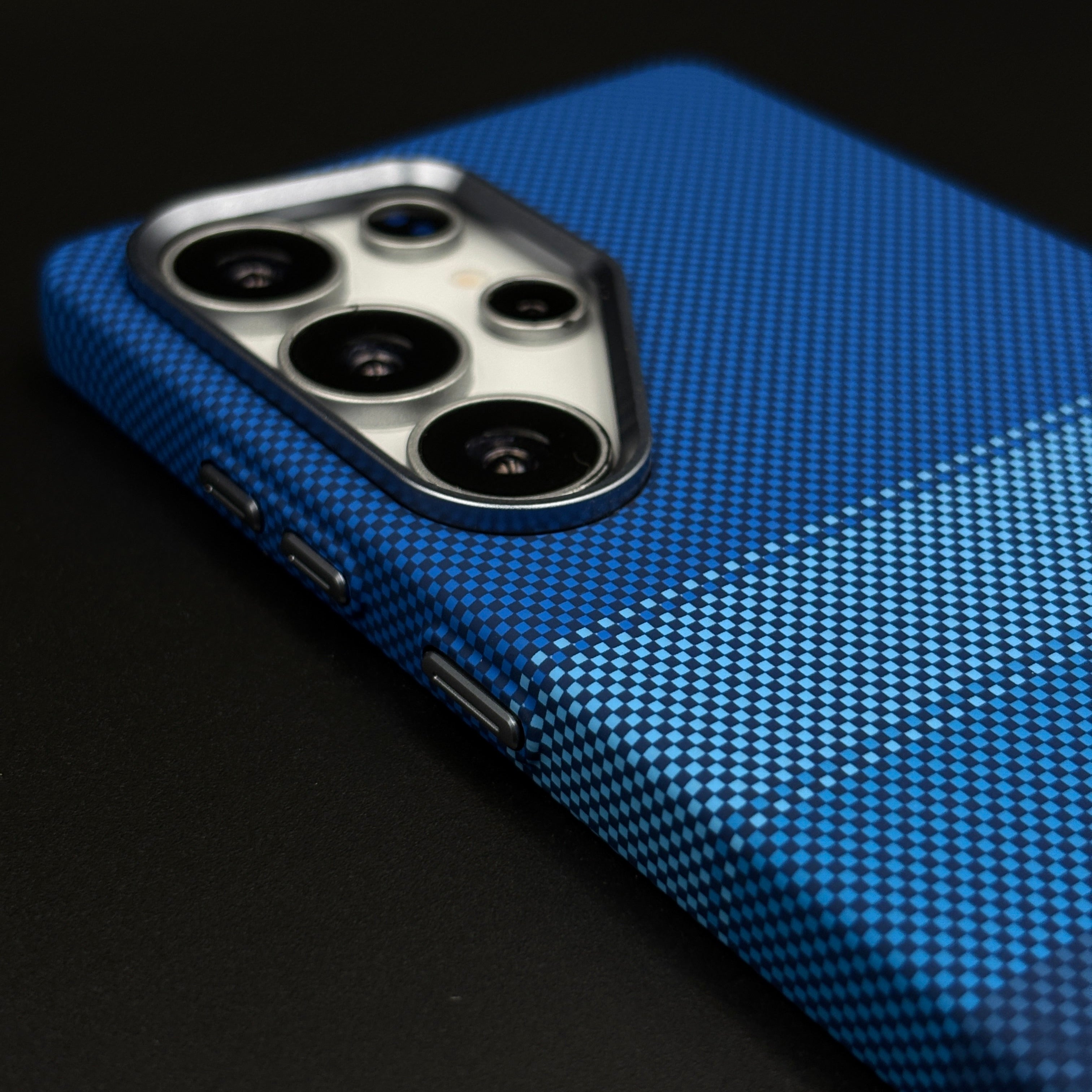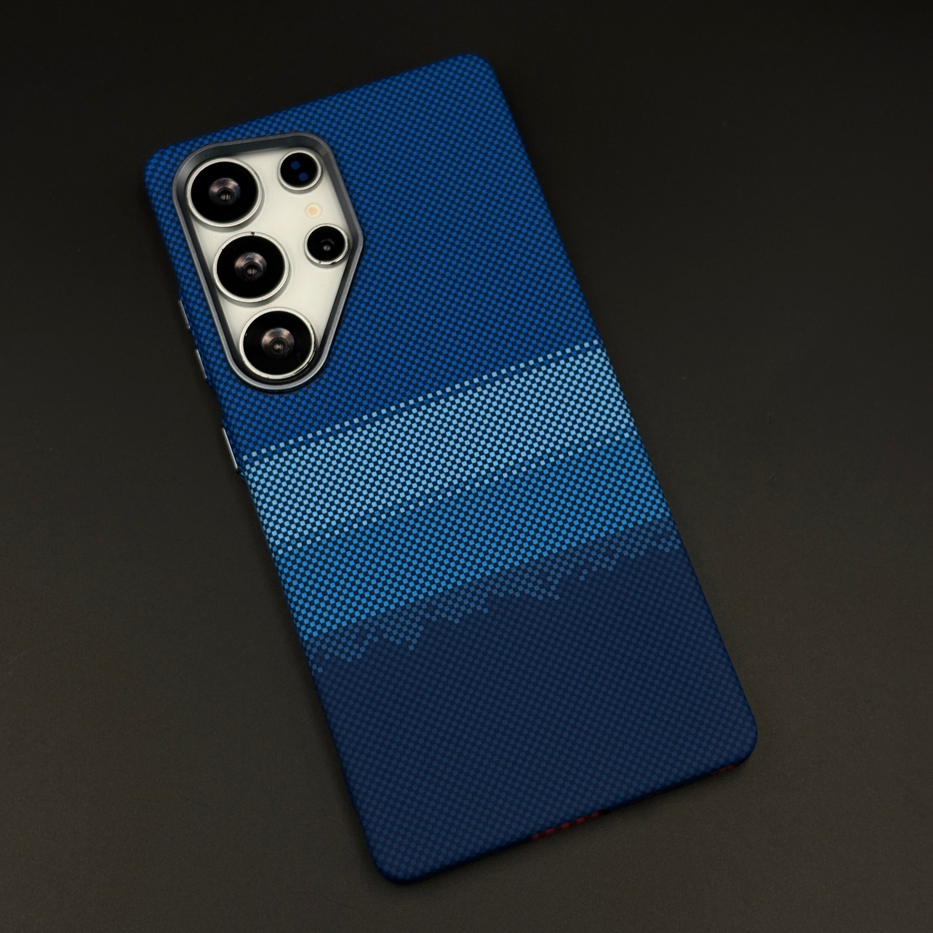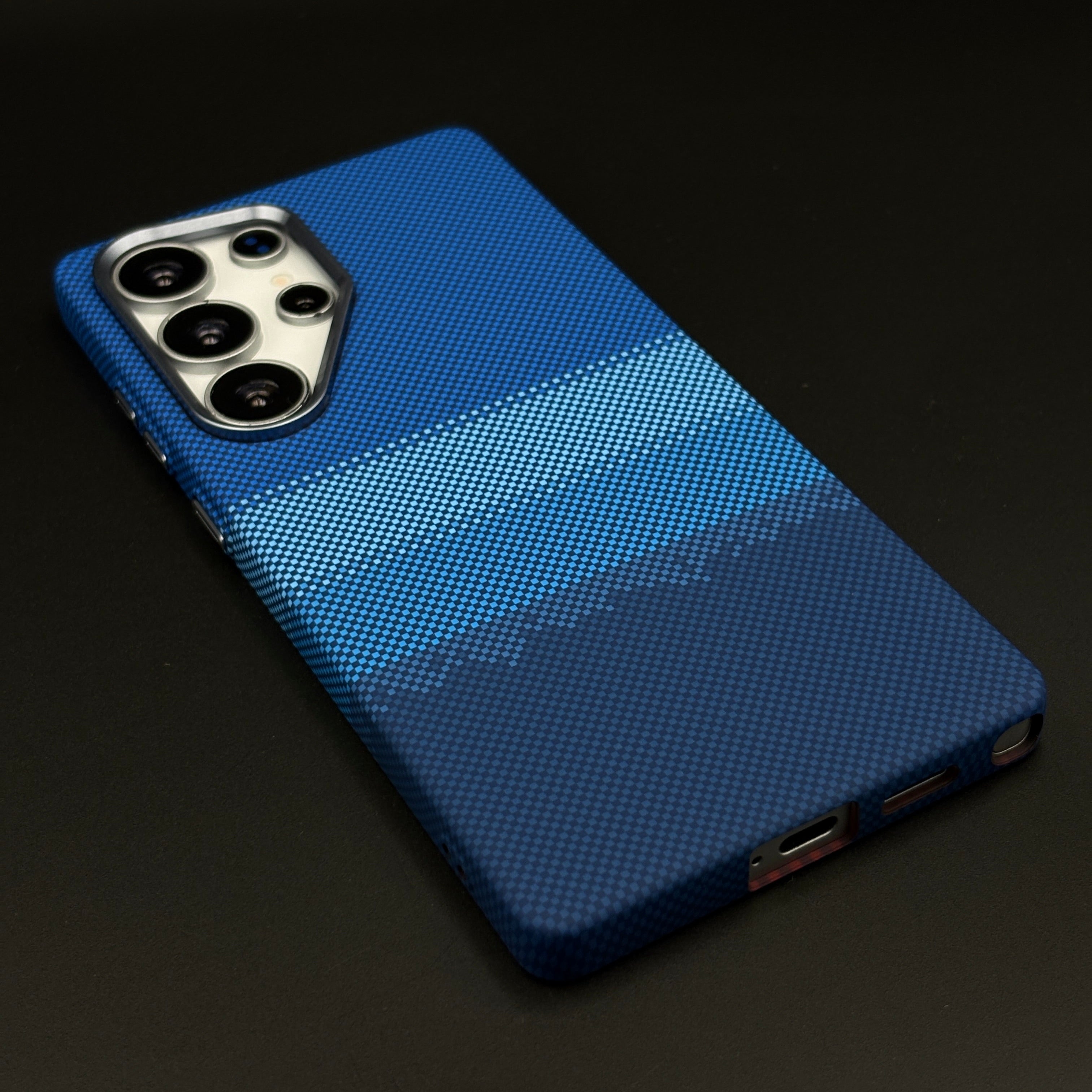 Style your Samsung Galaxy S25 Ultra with this Ocean Blue Wave Carbon Fibre Feel MagSafe Case—featuring a blue gradient wave band, carbon texture grip, and a slim-fit magnetic-ready design.