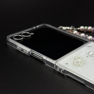 Bring refined elegance to your Galaxy Z Flip 7 with this pearl butterfly case, featuring embossed butterflies, pearl accents, and a detachable beaded charm strap. Designed for stylish protection, it adds charm while keeping your foldable safe from scratches and drops.