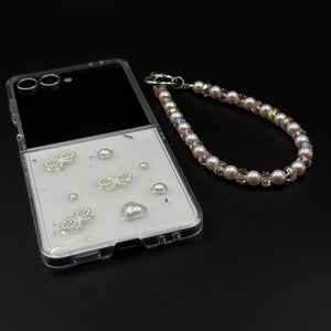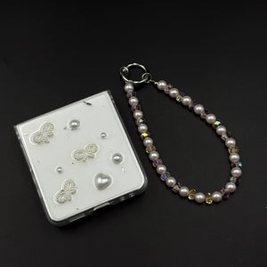 Pearl Butterfly Case with Beaded Charm Strap for Samsung Galaxy Z Flip 7 | Elegant Protective Cover