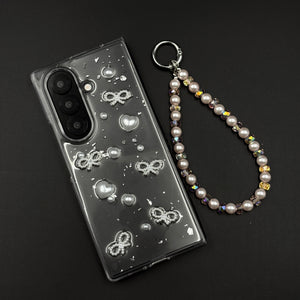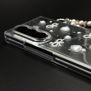 Bring refined elegance to your Galaxy Z Fold 7 with this pearl butterfly case, featuring embossed butterflies, pearl accents, and a detachable beaded charm strap. Designed for stylish protection, it adds charm while keeping your foldable safe from scratches and drops.